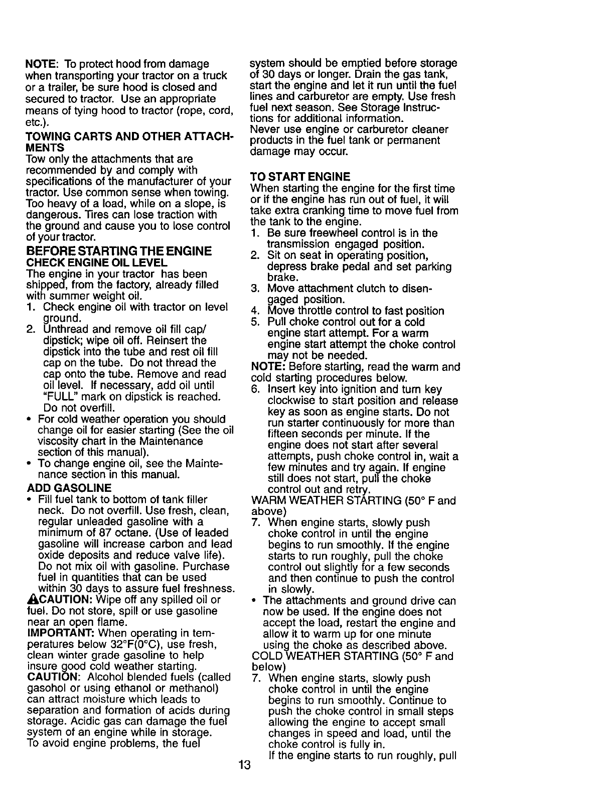 from previously built engines. Before you start the engine, read
