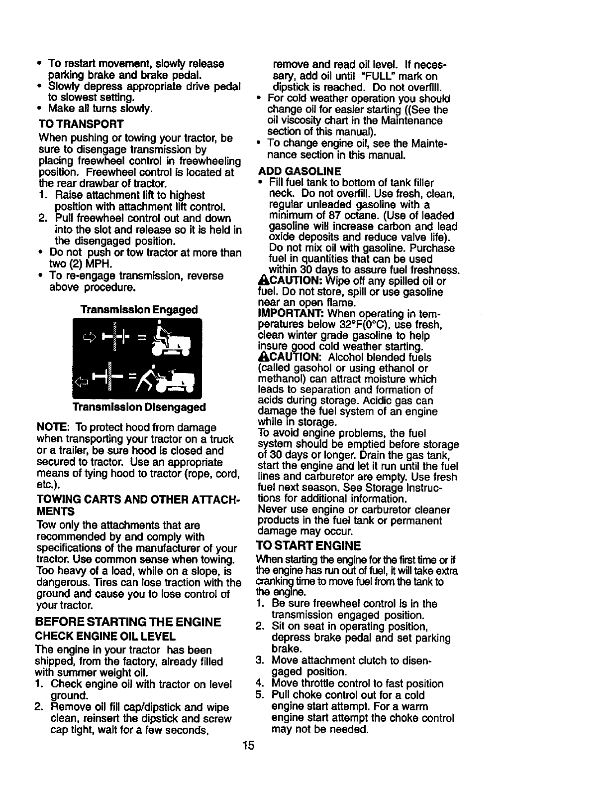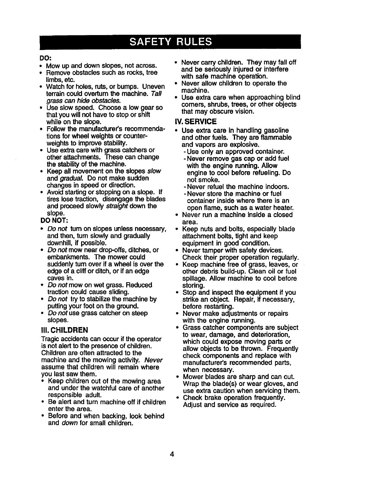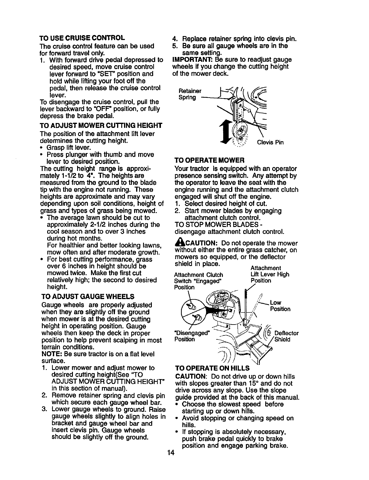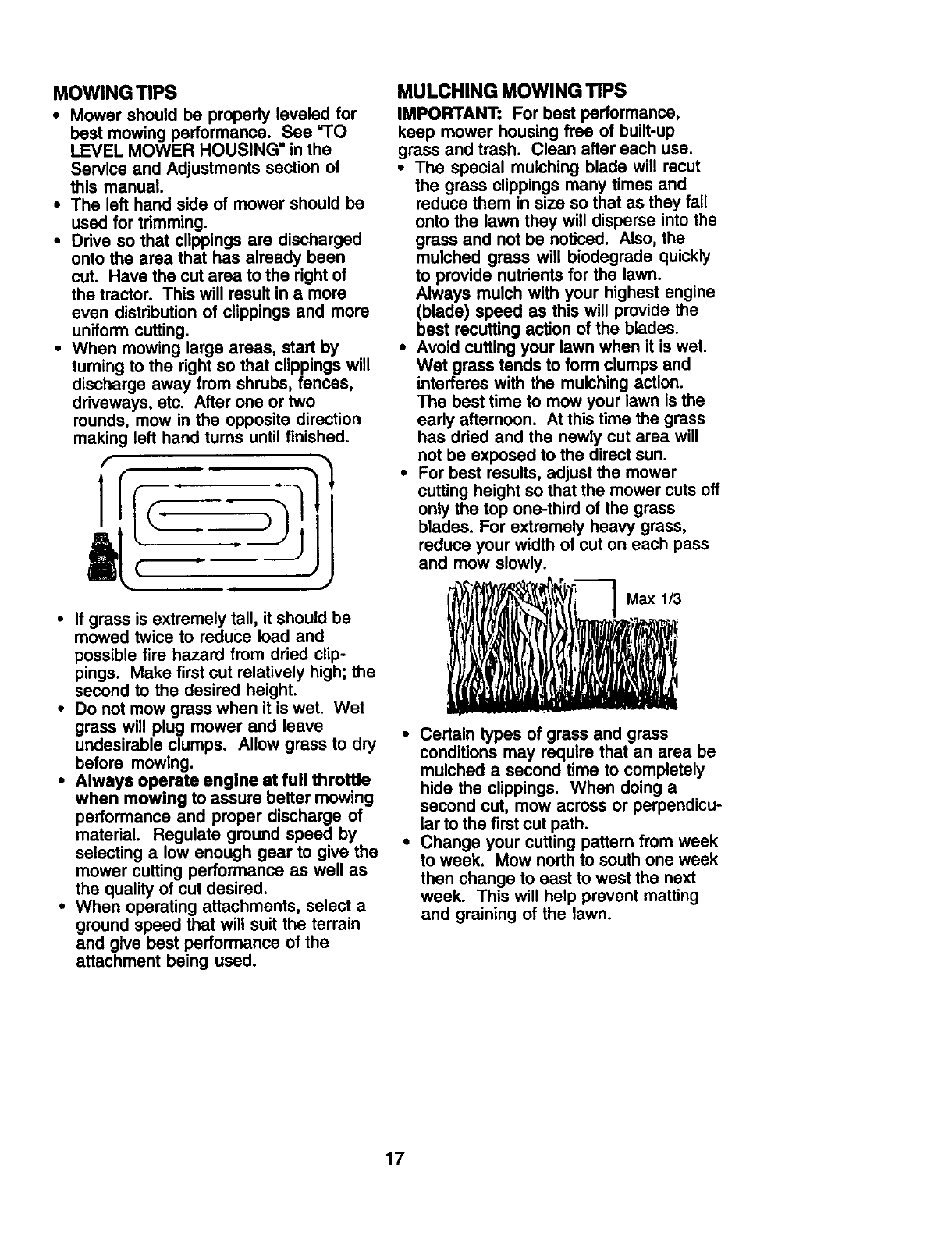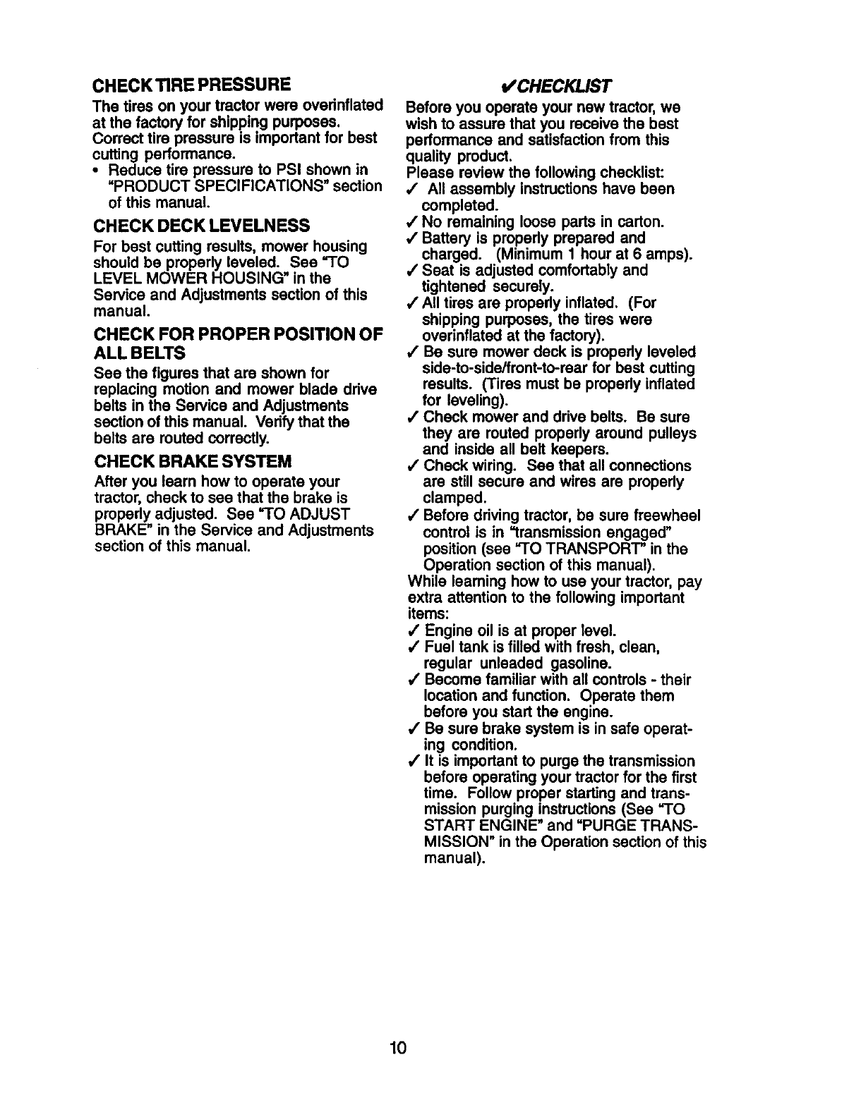 proper grade and amount of engine oil, failure to keep the deck clear of flammable