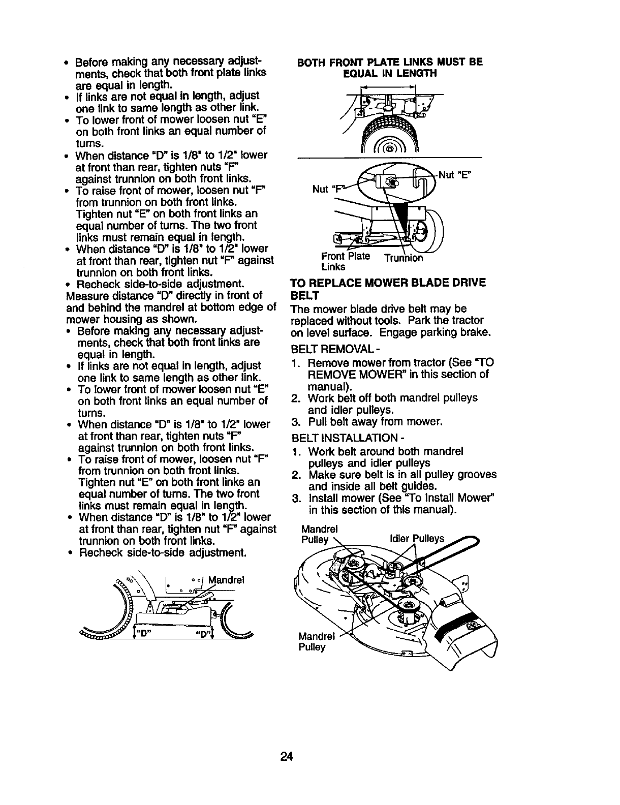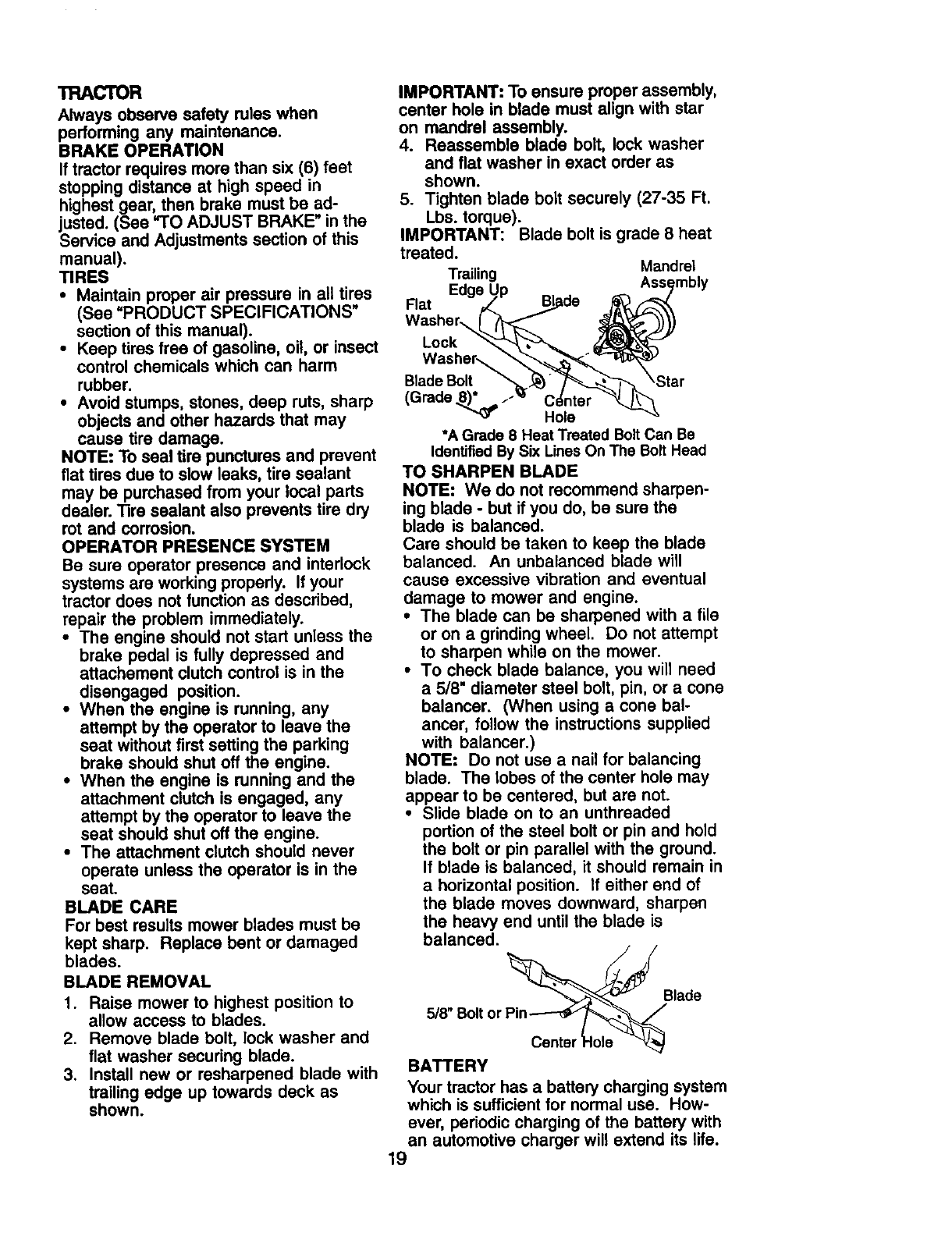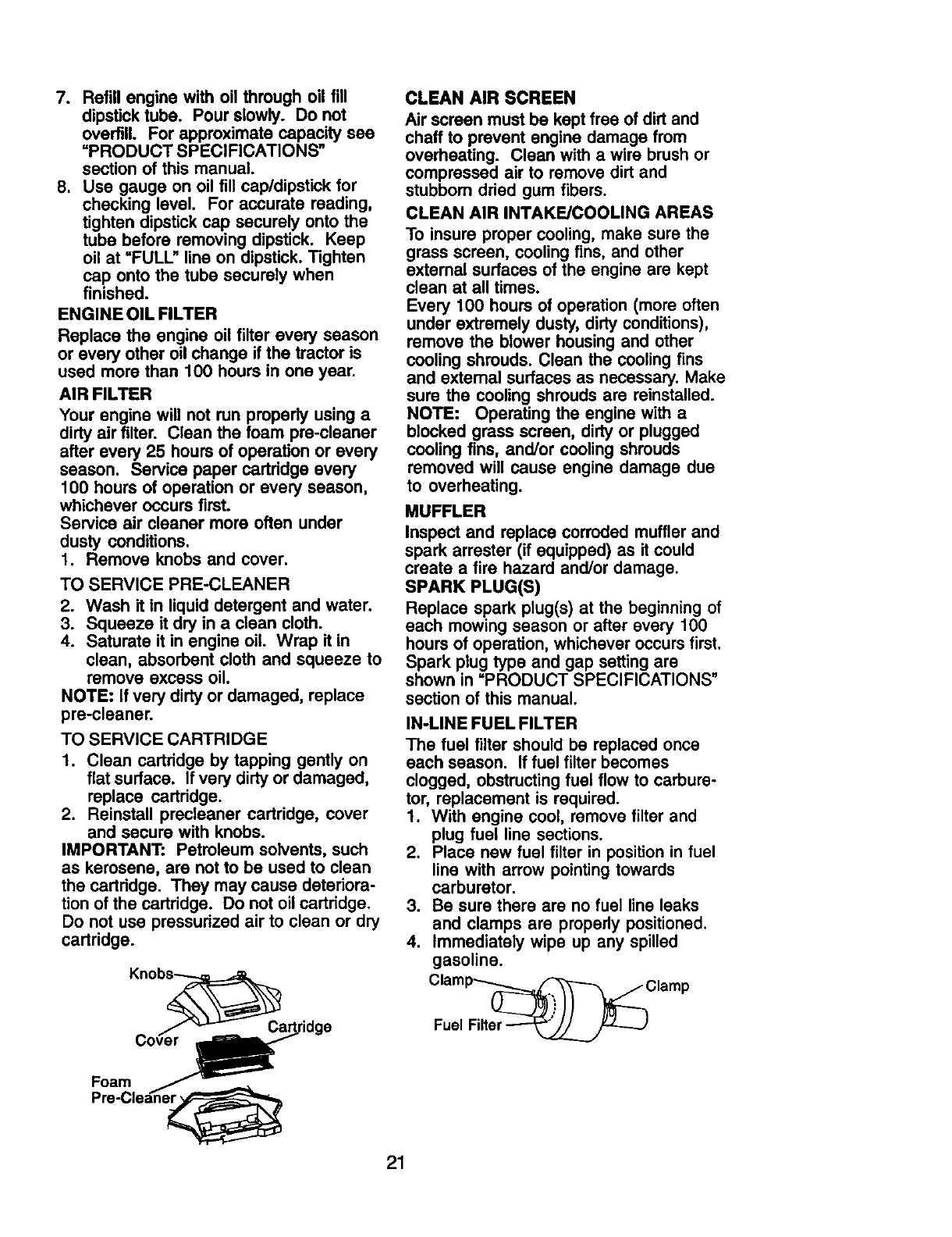 to blades, spark plugs, air cleaners, belts, and oil filters.
