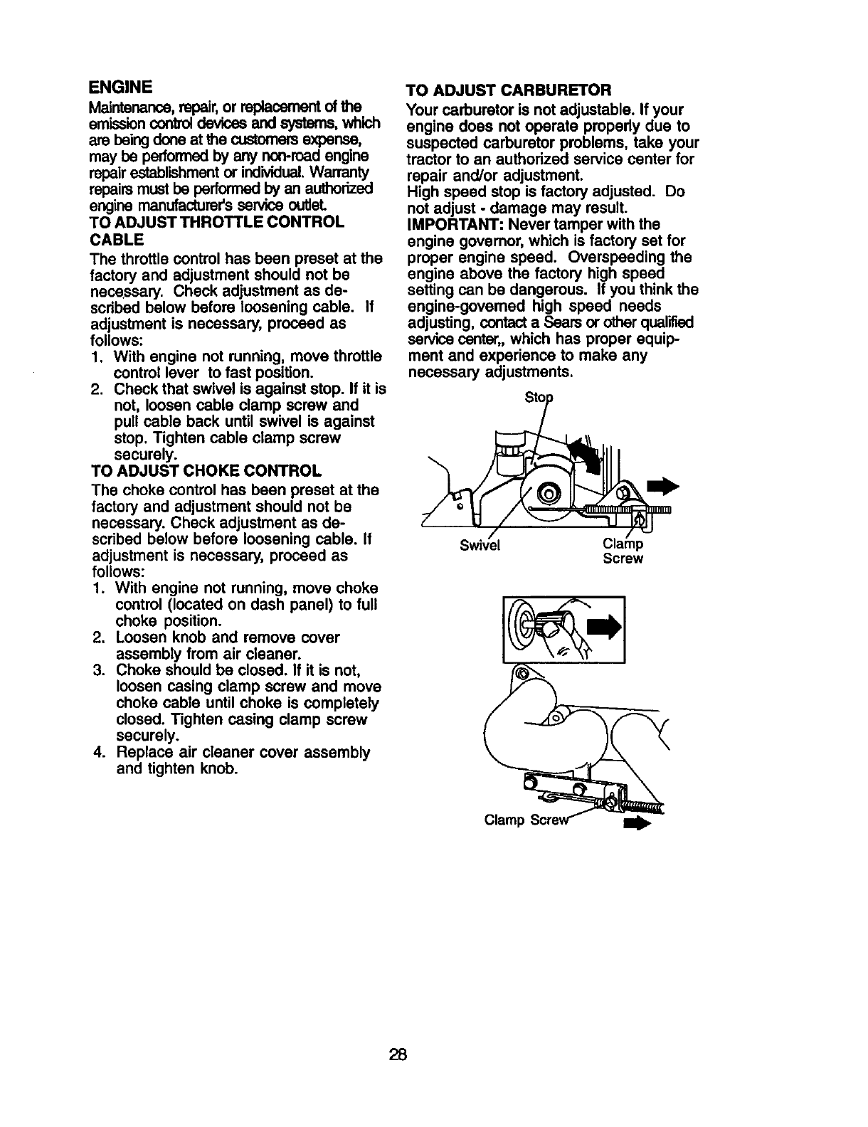 maintained, lubricated and tuned up according to the instructions in the owner's
