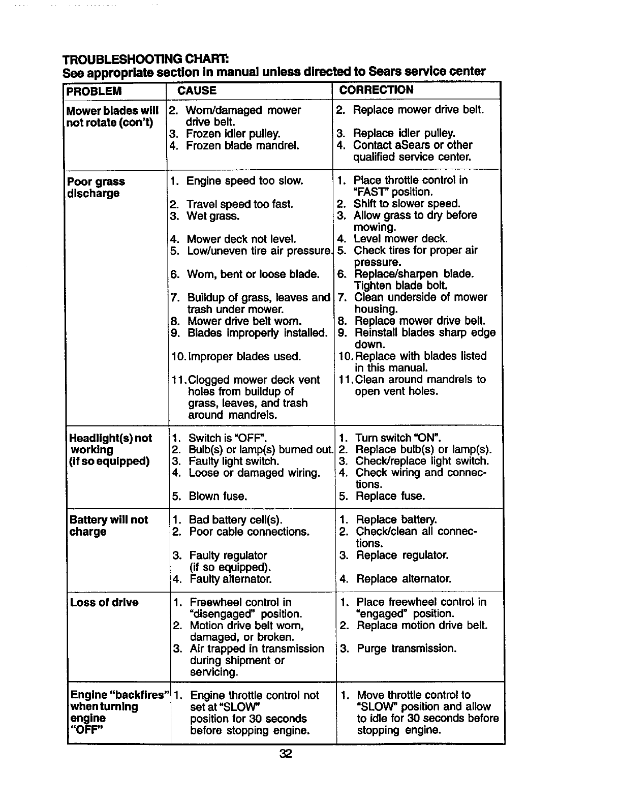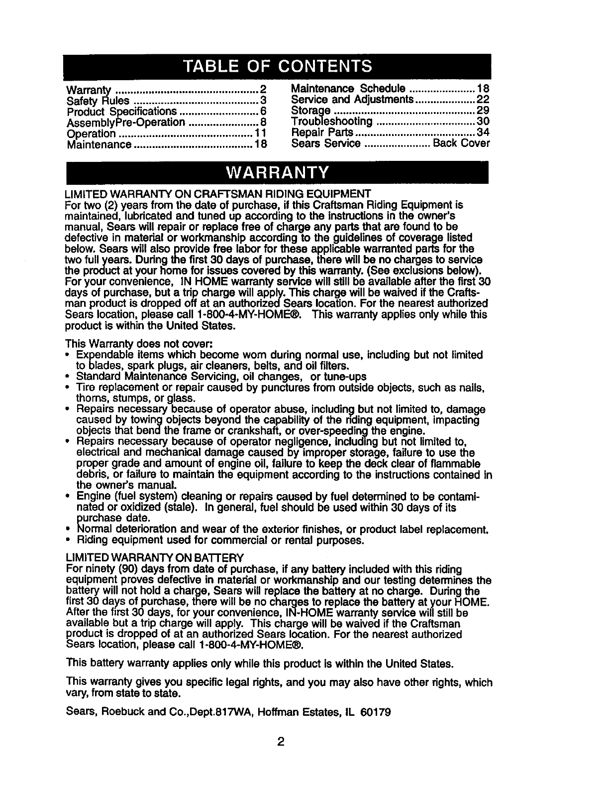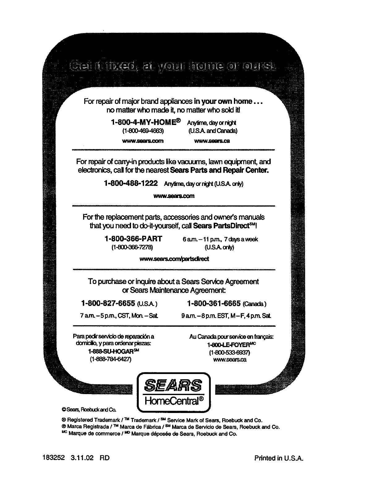 Sears Service ...................... Back Cover