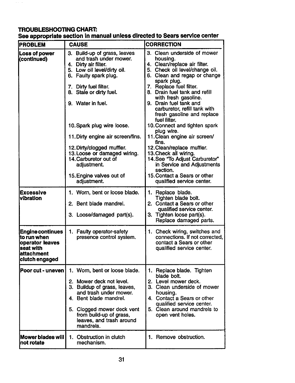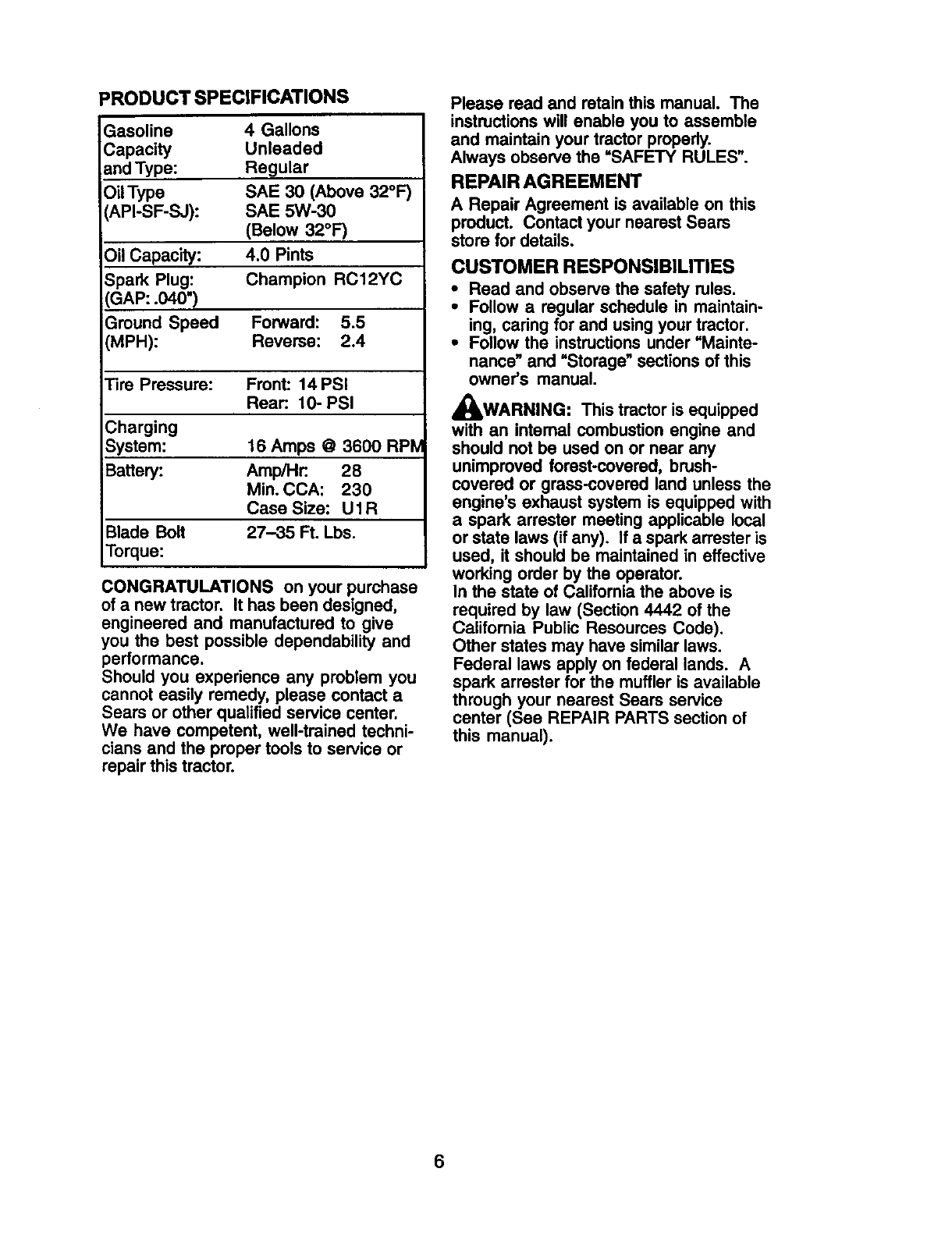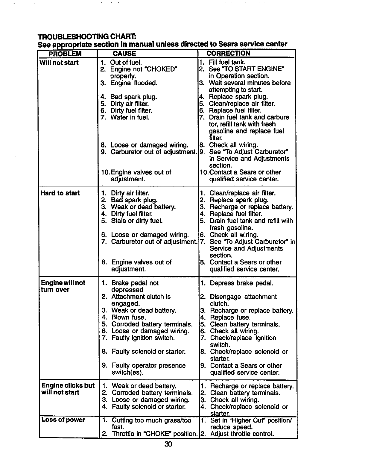Sears Service ...................... Back Cover