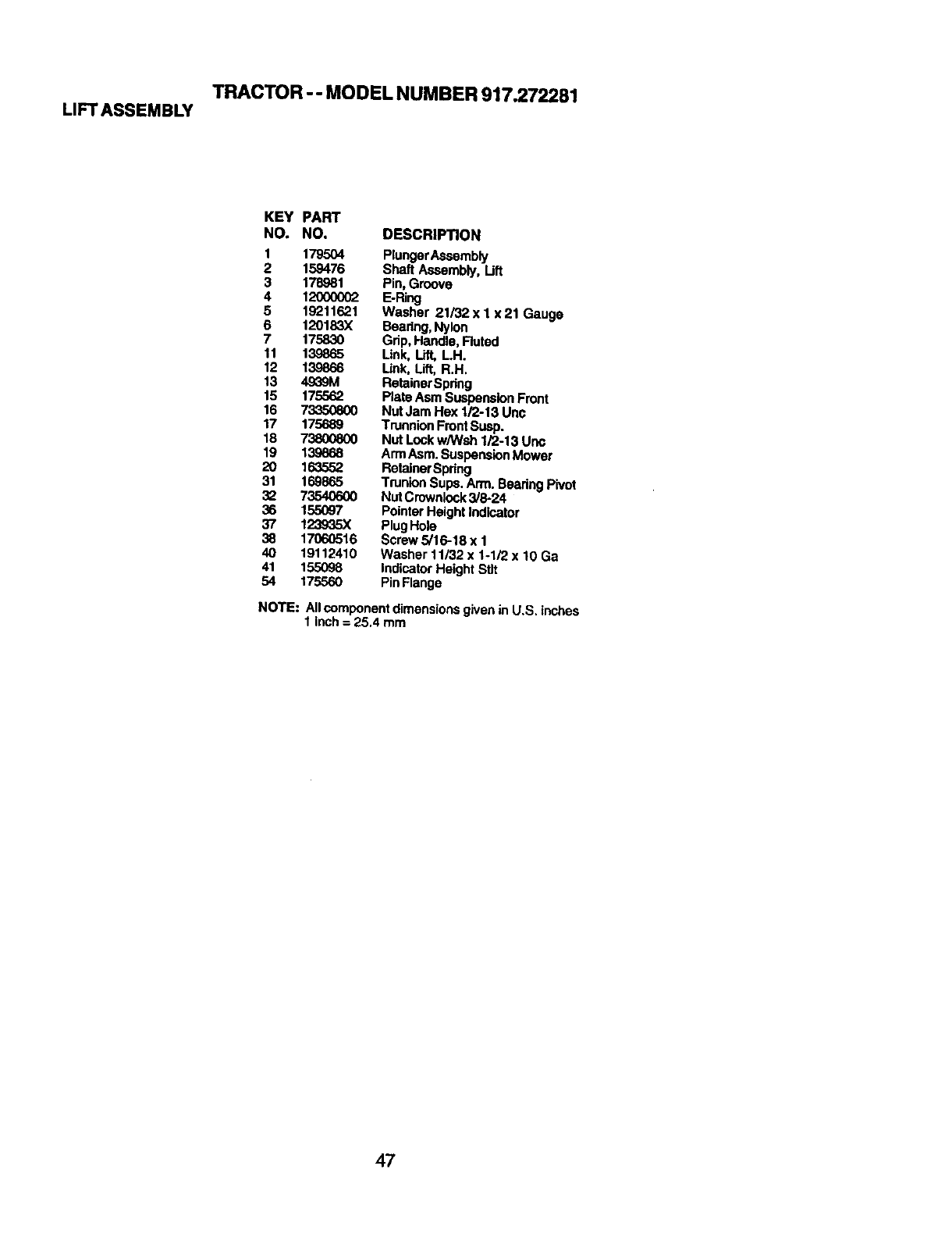 NOTE: All component dimensions given in U.S.