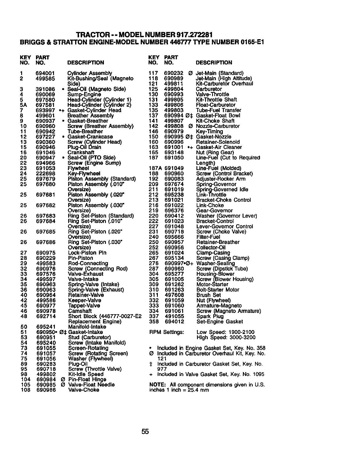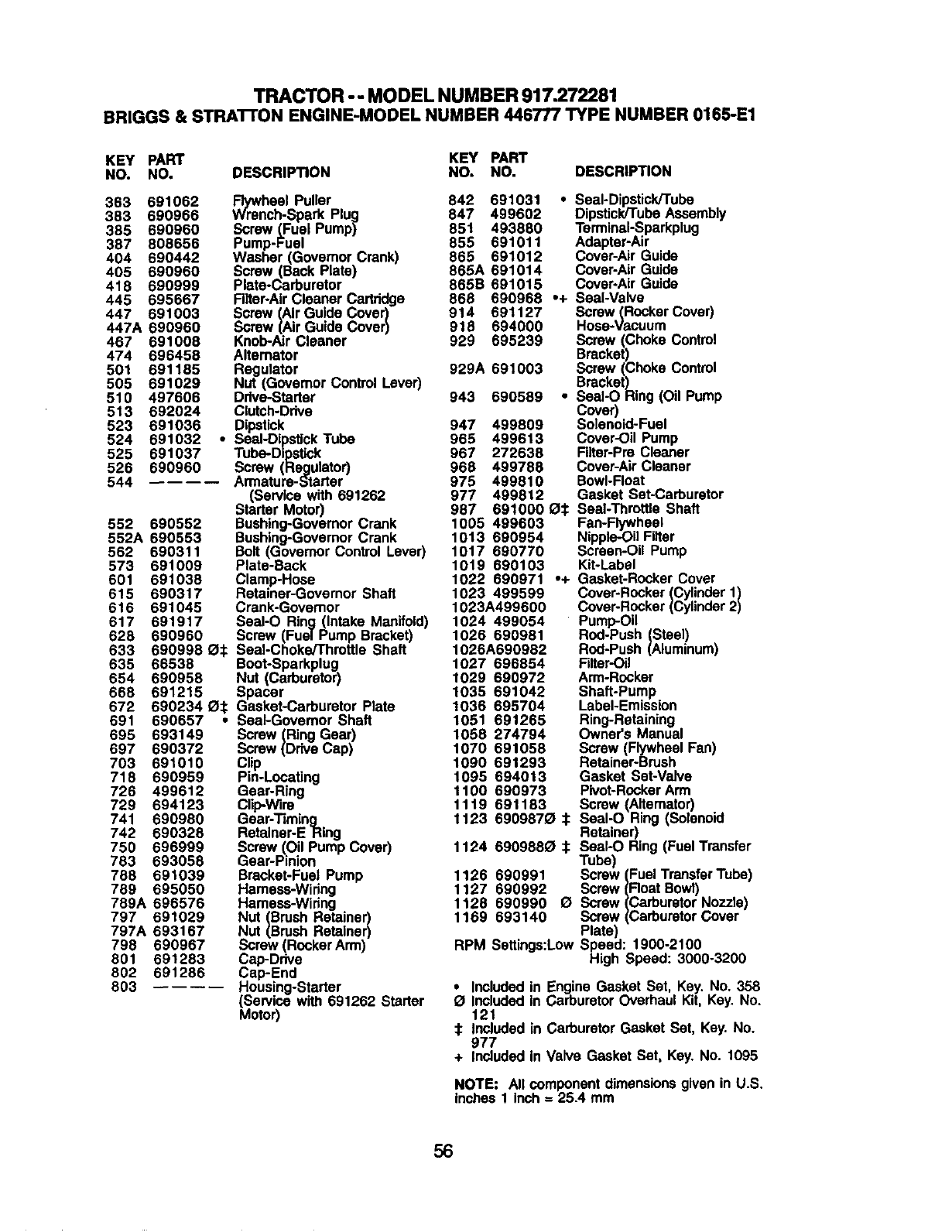 + Included in Valve Gasket Set, Key. No. 1095
