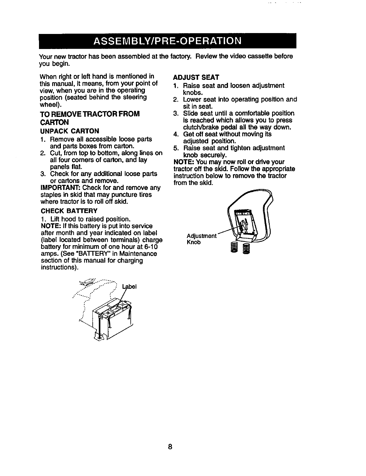AssemblyPre-Operation ....................... 8
