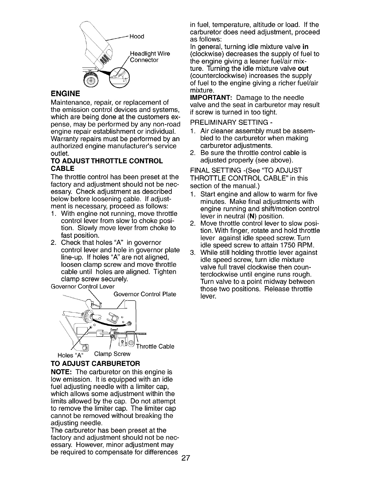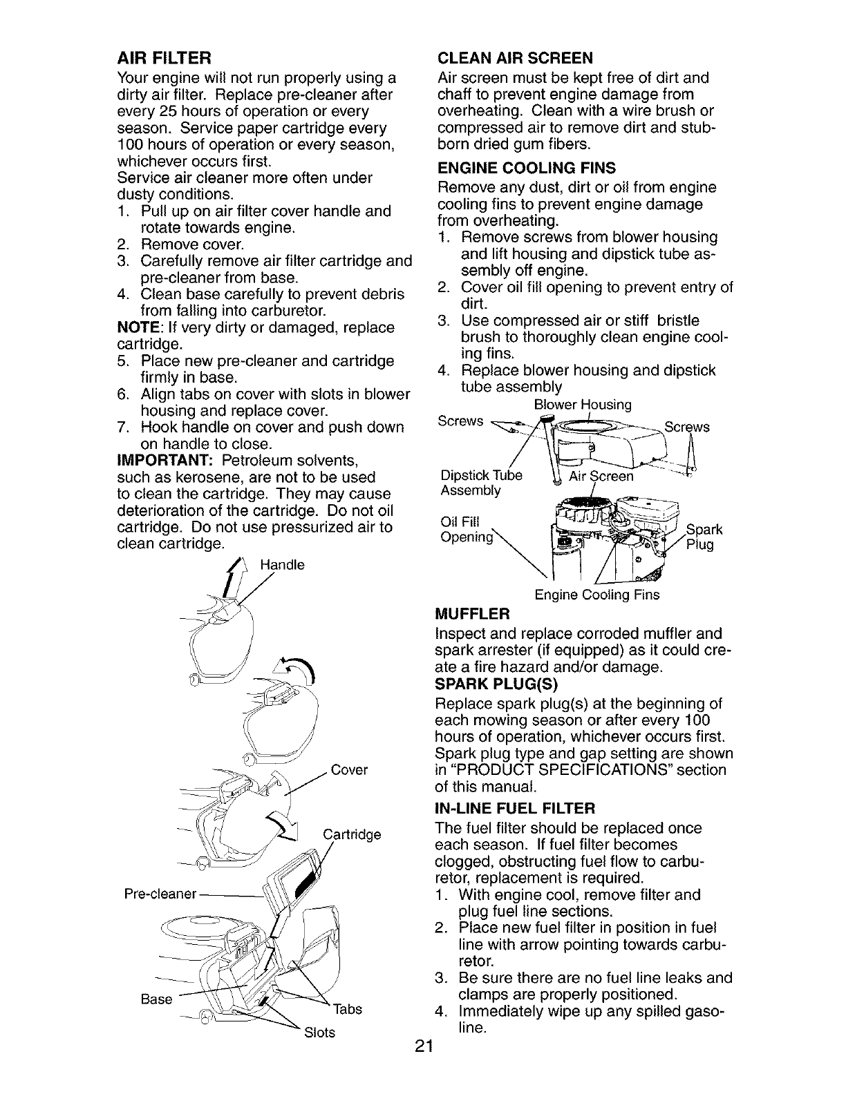 maintained, lubricated and tuned up according to the instructions in the owner's manual,