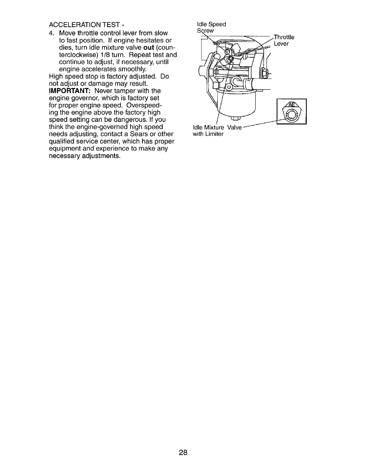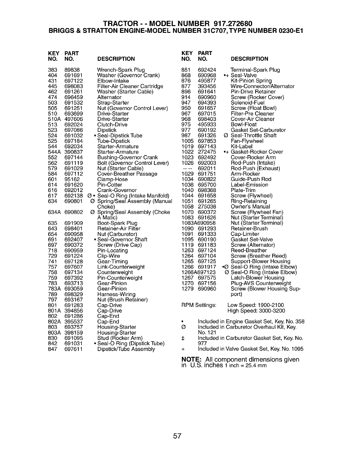 801 691283 Cap-Drive RPM Settings: Low Speed: 1900-2100