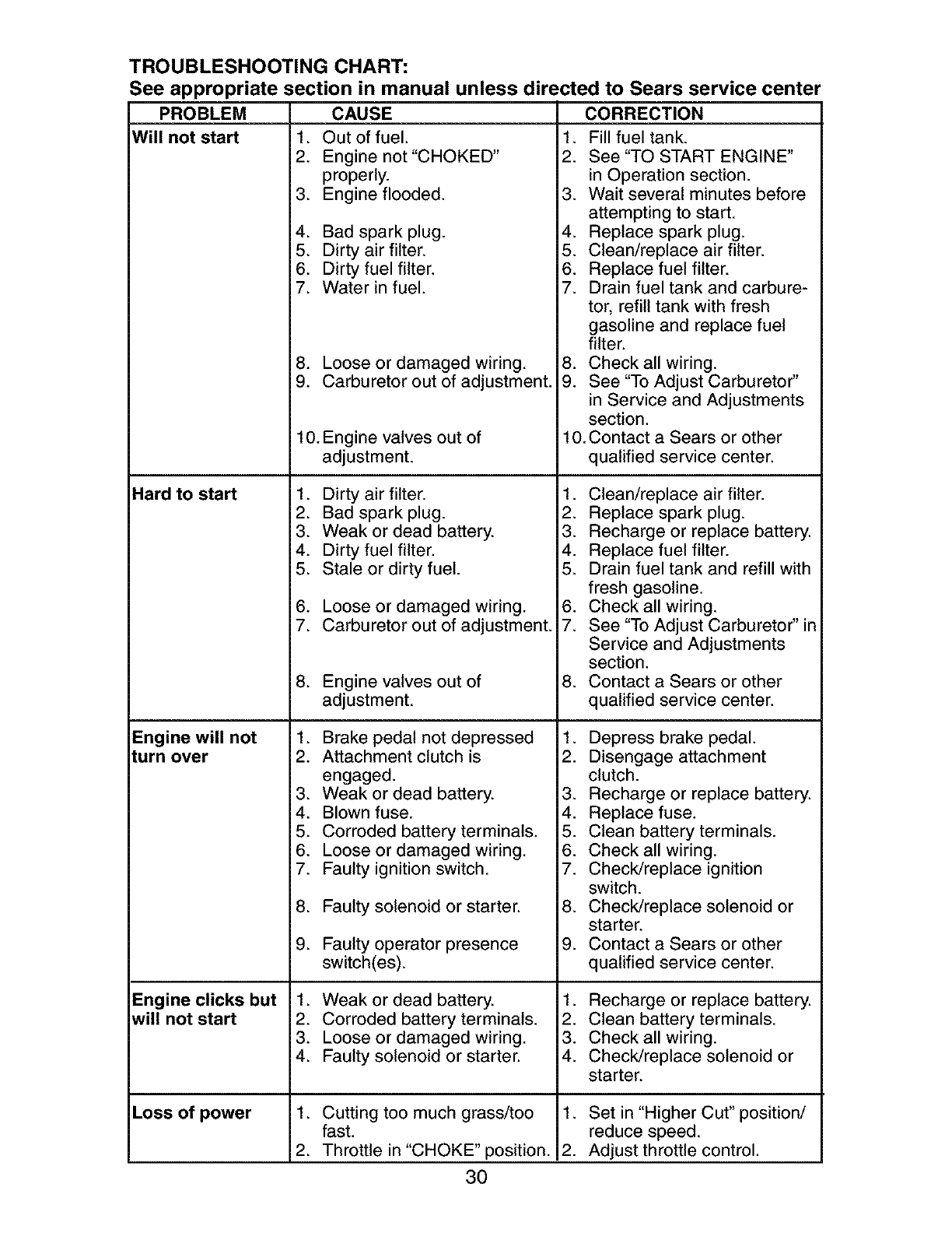 will not hold a charge, Sears will replace the battery at no charge. During the first 30