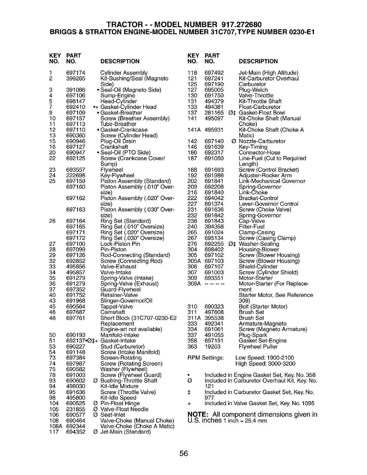 579 691029 Nut (Starter Cable) .... 692011 Rod-Push (Exhaust)