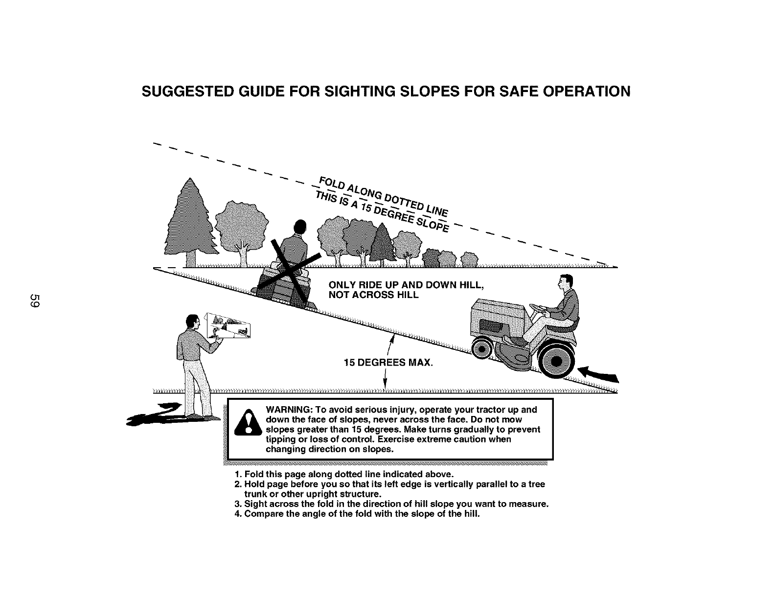 slopes greater than 15 degrees, Make turns gradually to prevent
