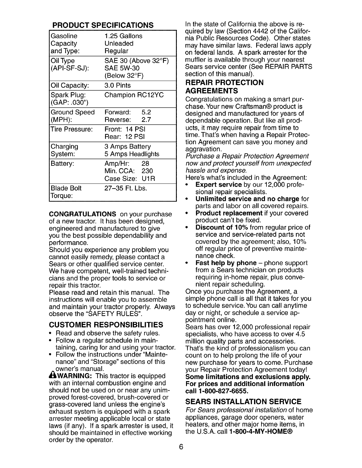 CRAFTSMAN Lawn, Tractor Manual L0305003 CRAFTSMAN Lawn, Tractor Owner's Manual, CRAFTSMAN Lawn, Tractor installation guides