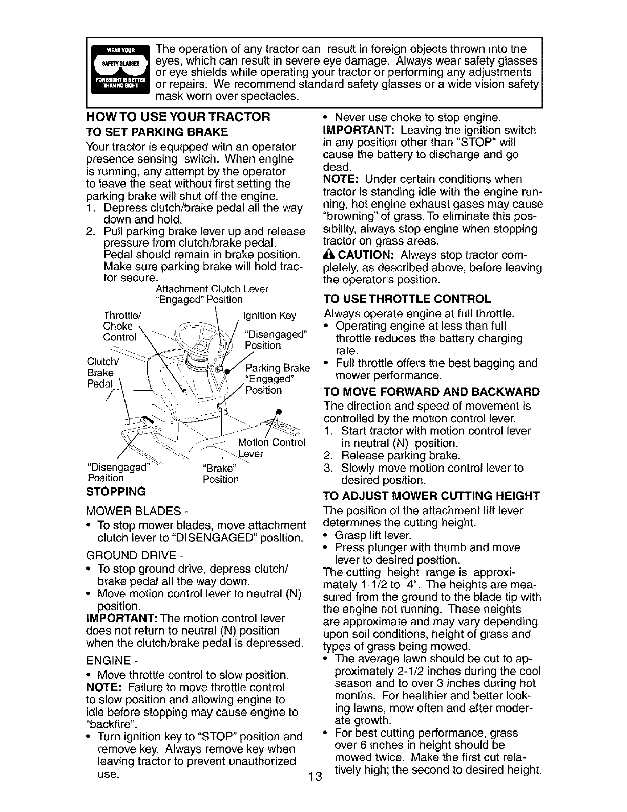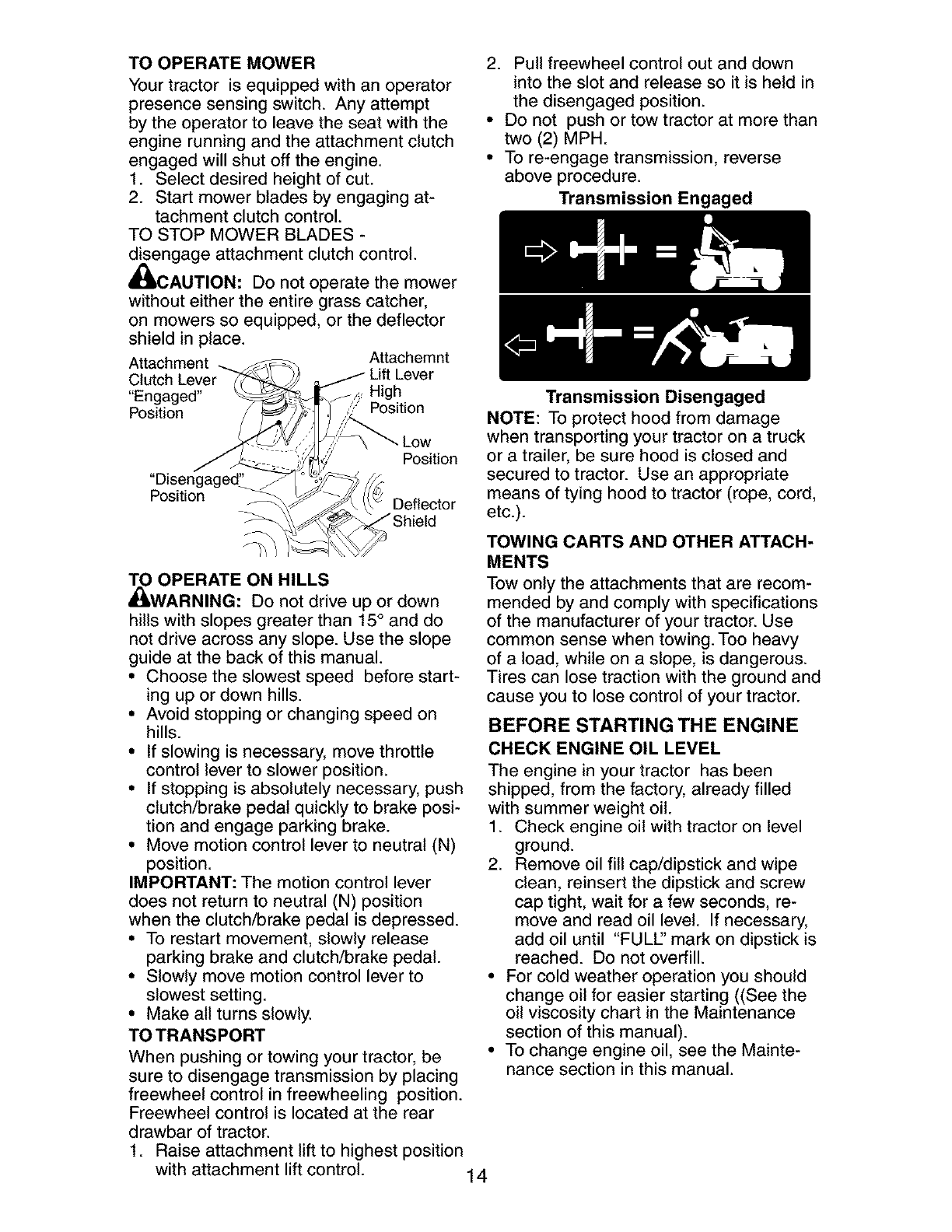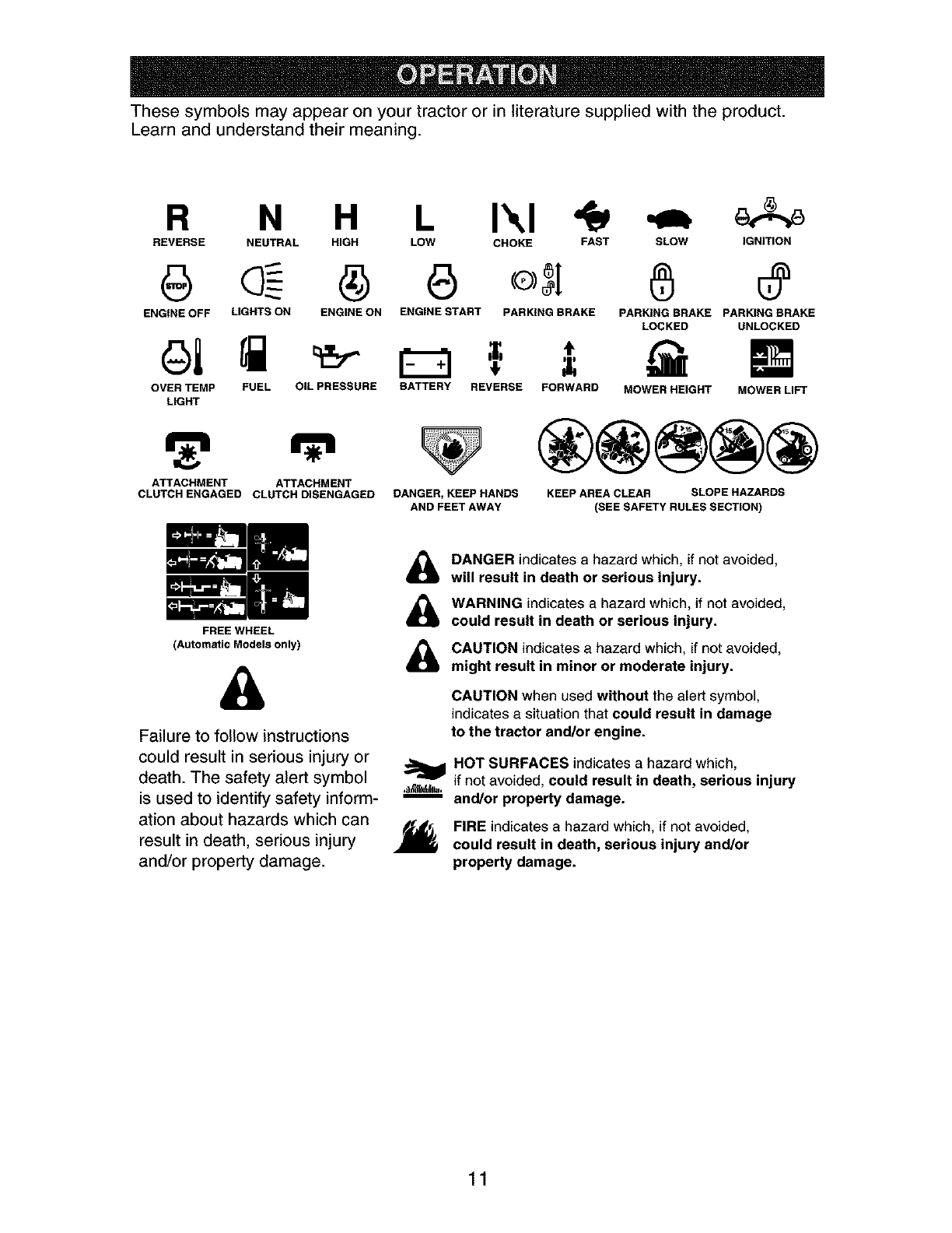 _IL ARNING: To avoid serious injury, operate your tractor up and