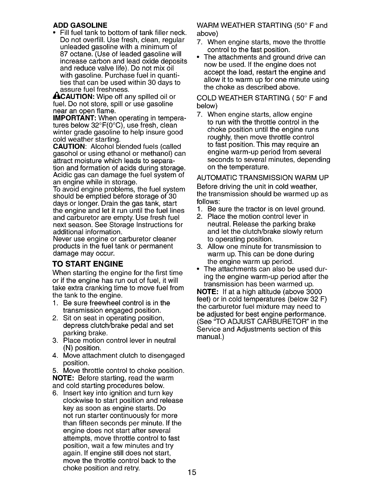 nated or oxidized (stale). In general, fuel should be used within 30 days of its pur-