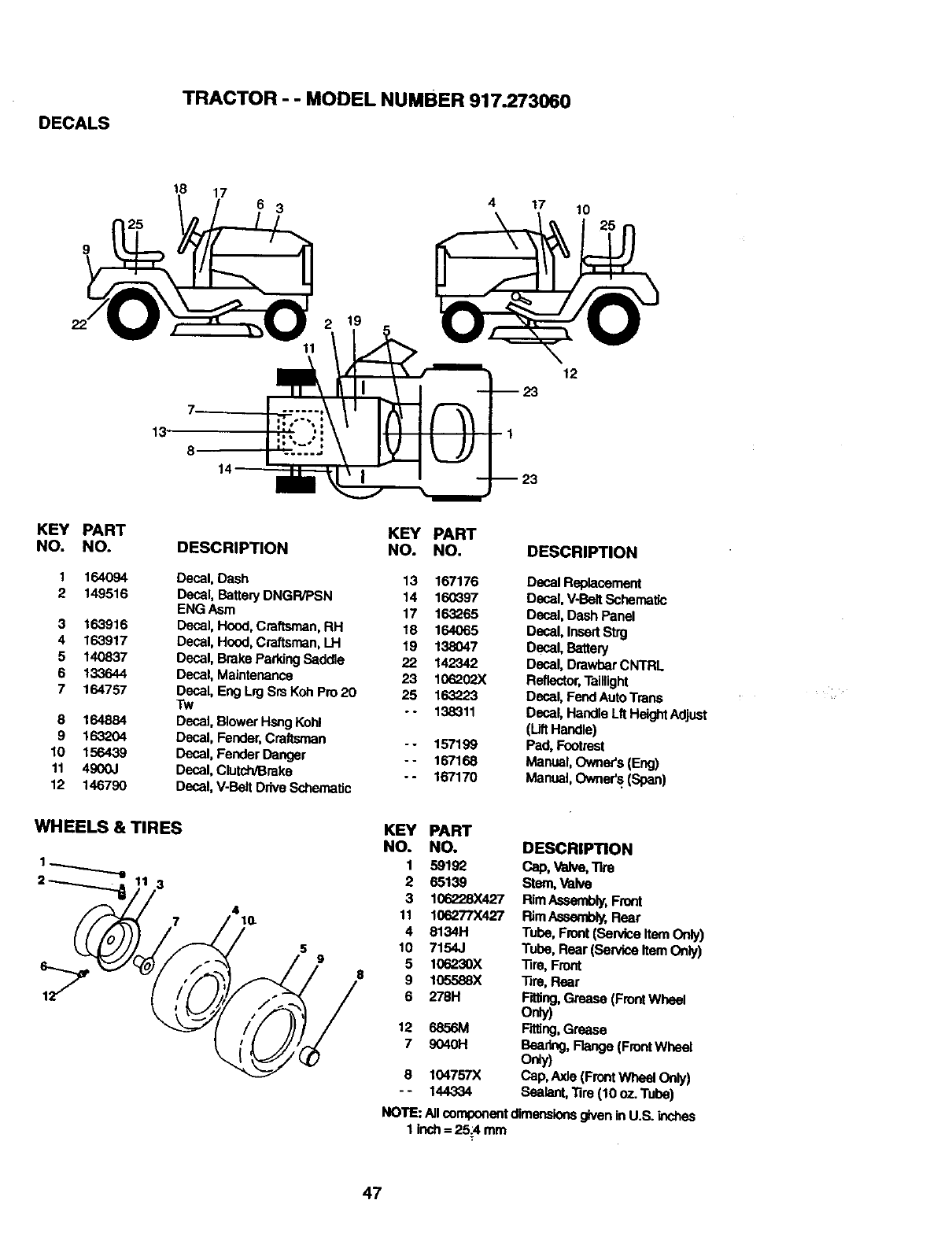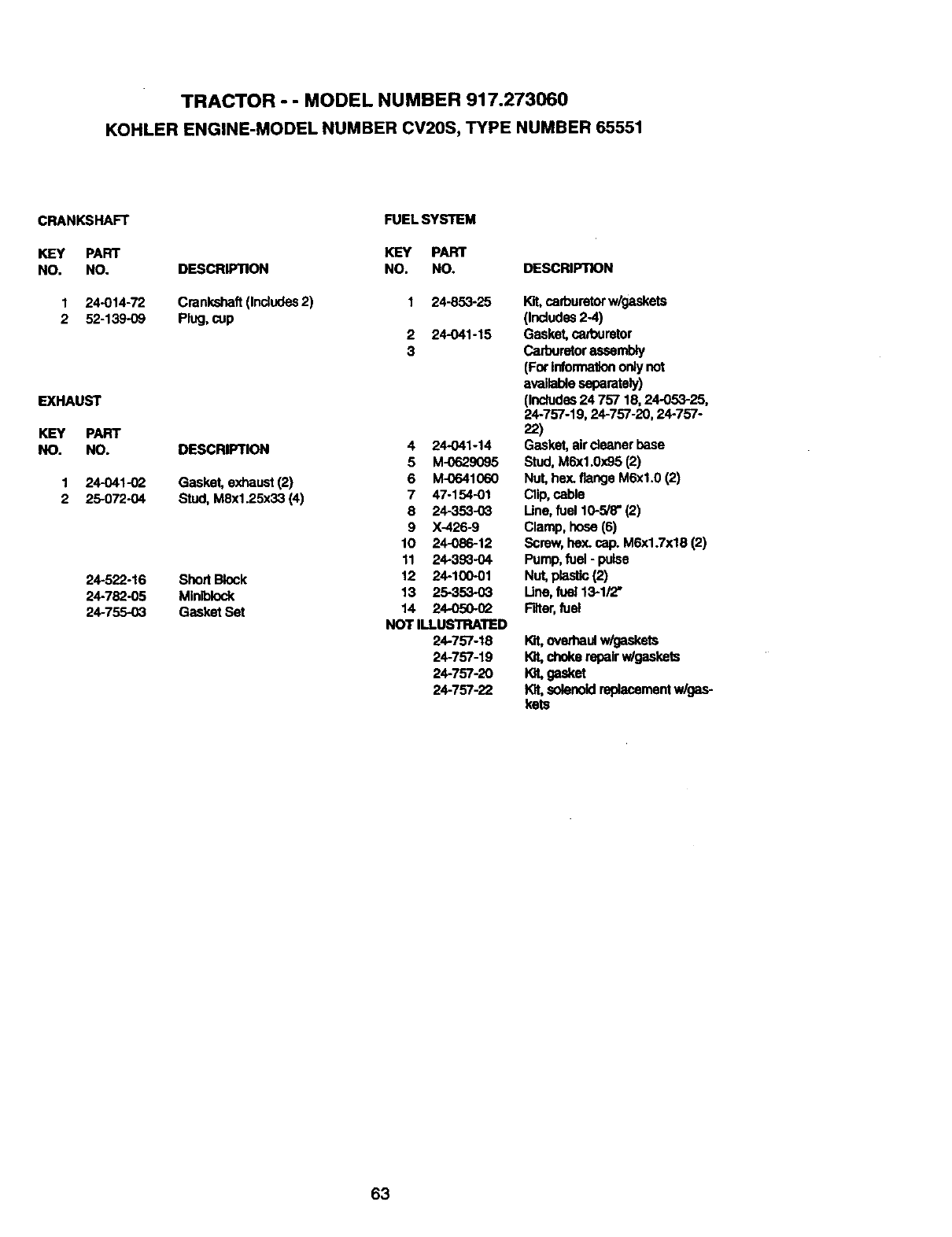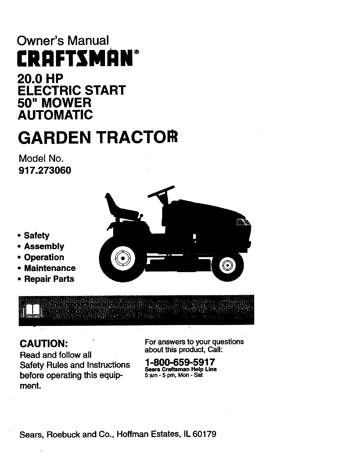 917273060 917273060 CRAFTSMAN TRACTOR - Manuals and Guides 98120027 View the owners manual for your CRAFTSMAN TRACTOR #917273060. Home:Lawn & Garden Parts:Craftsman Parts:Craftsman TRACTOR Manual
