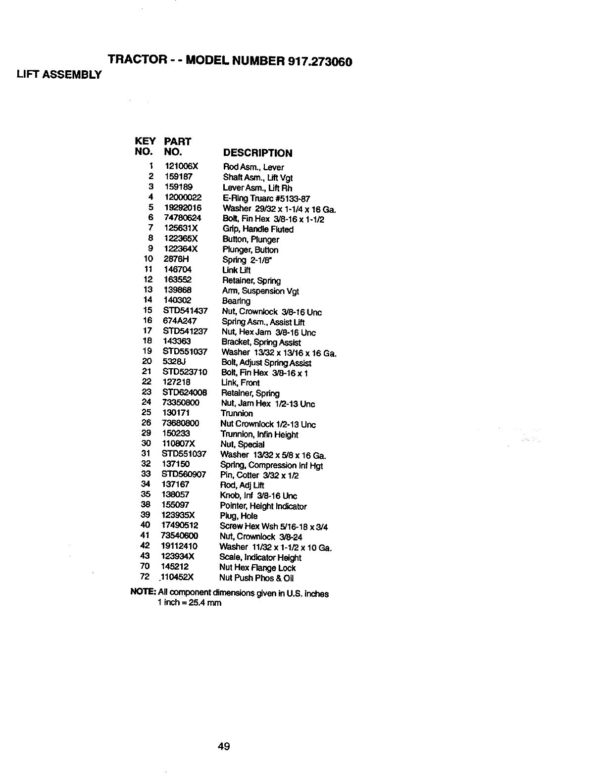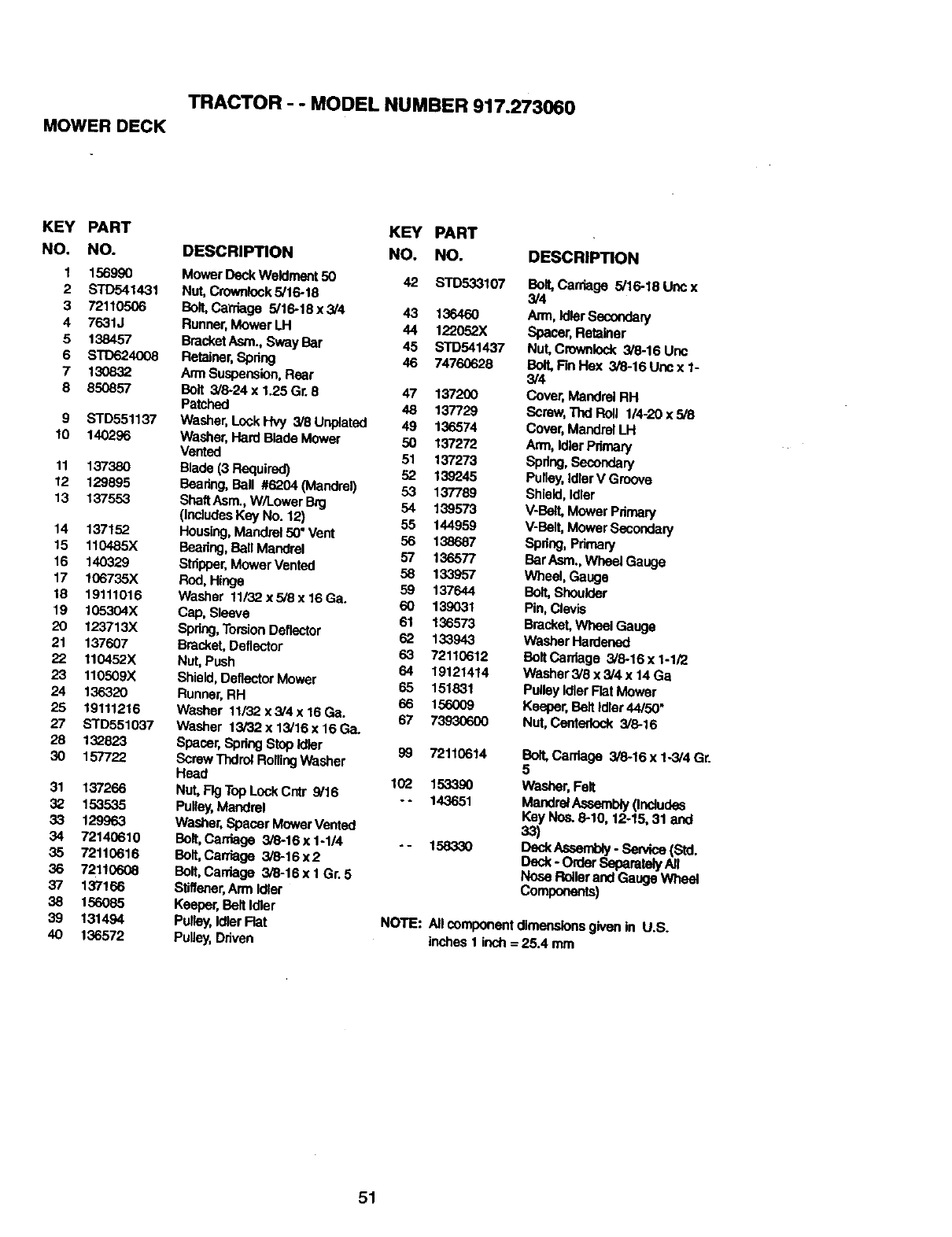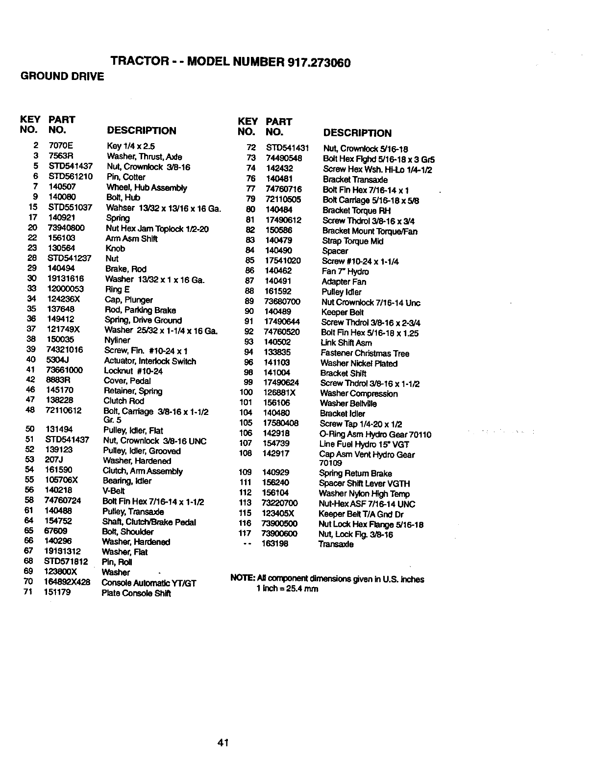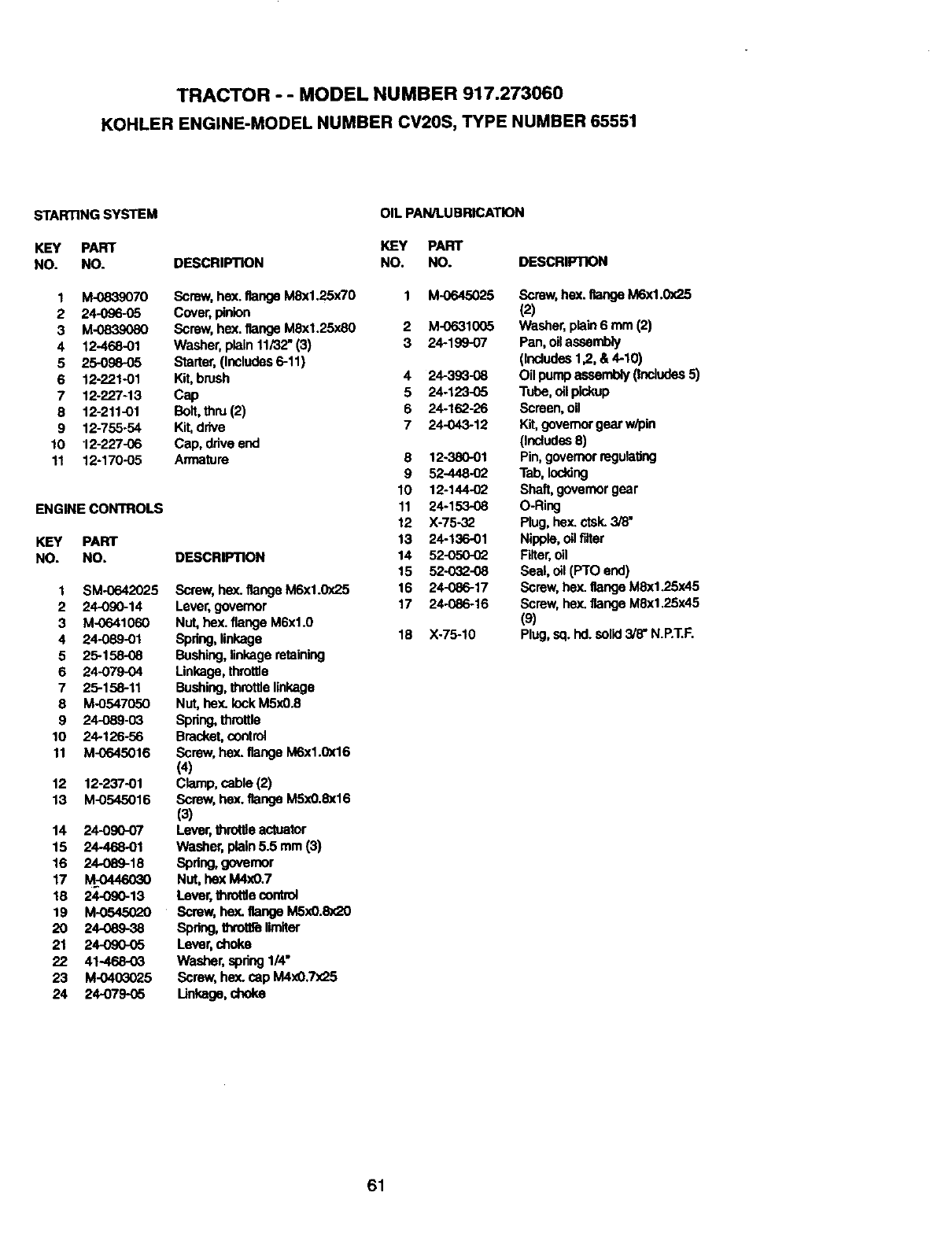 917273060 917273060 CRAFTSMAN TRACTOR - Manuals and Guides 98120027 View the owners manual for your CRAFTSMAN TRACTOR #917273060. Home:Lawn & Garden Parts:Craftsman Parts:Craftsman TRACTOR Manual