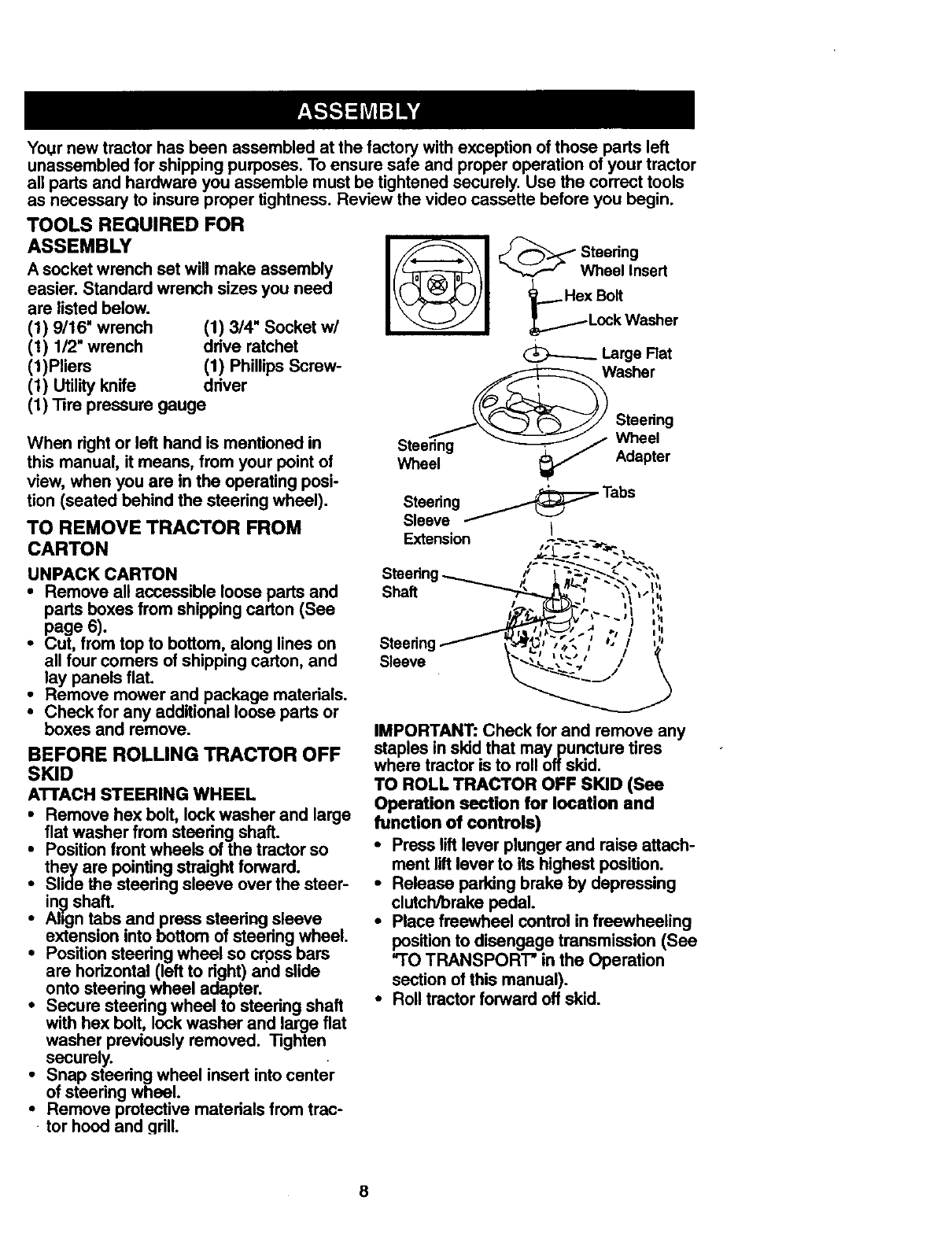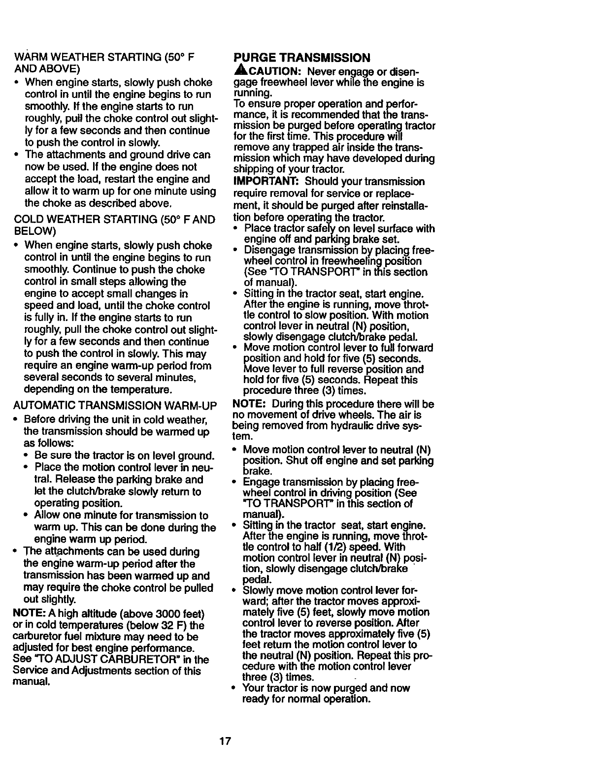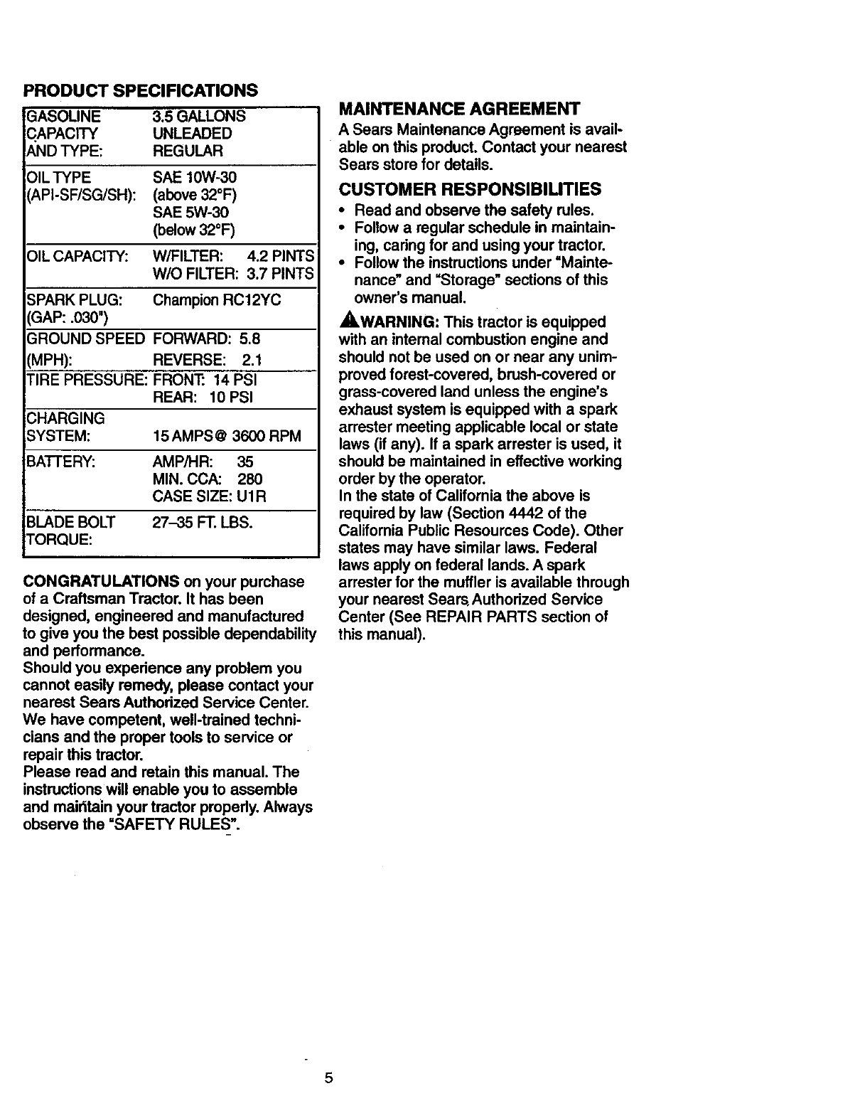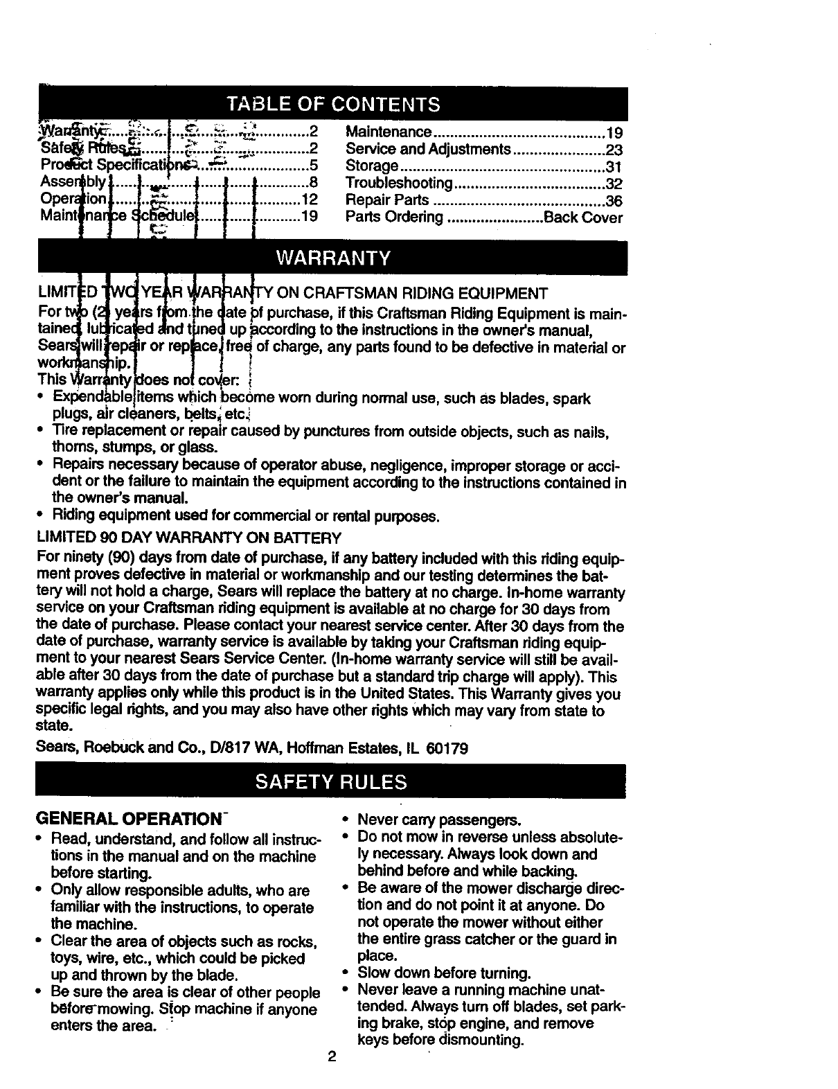 date of purchase, warranty service is available by taking your Craftsman riding equip-