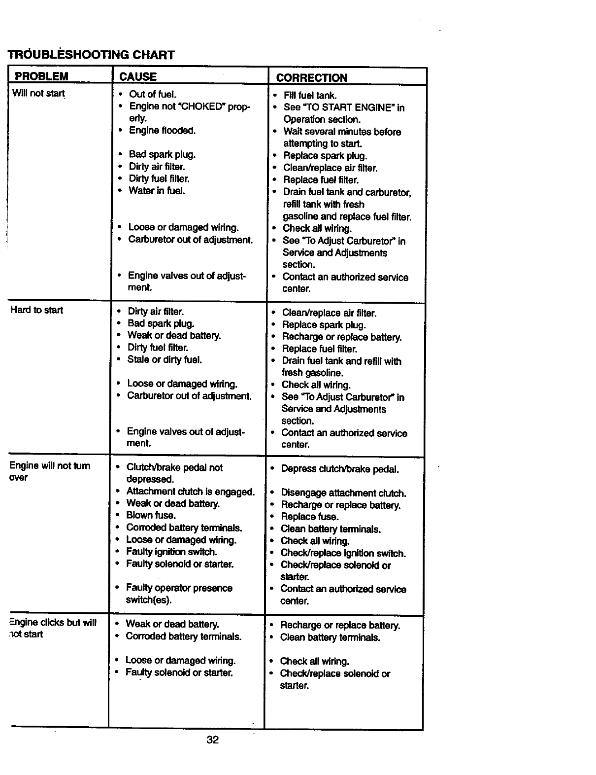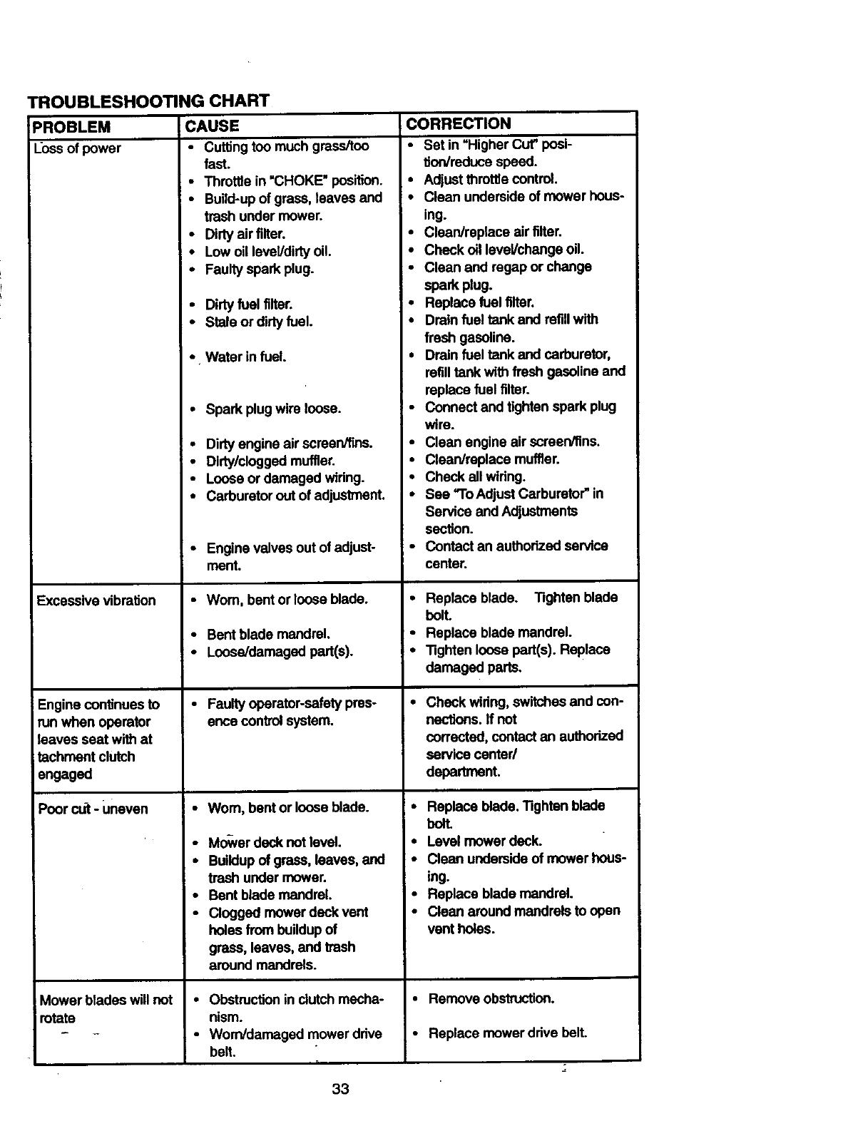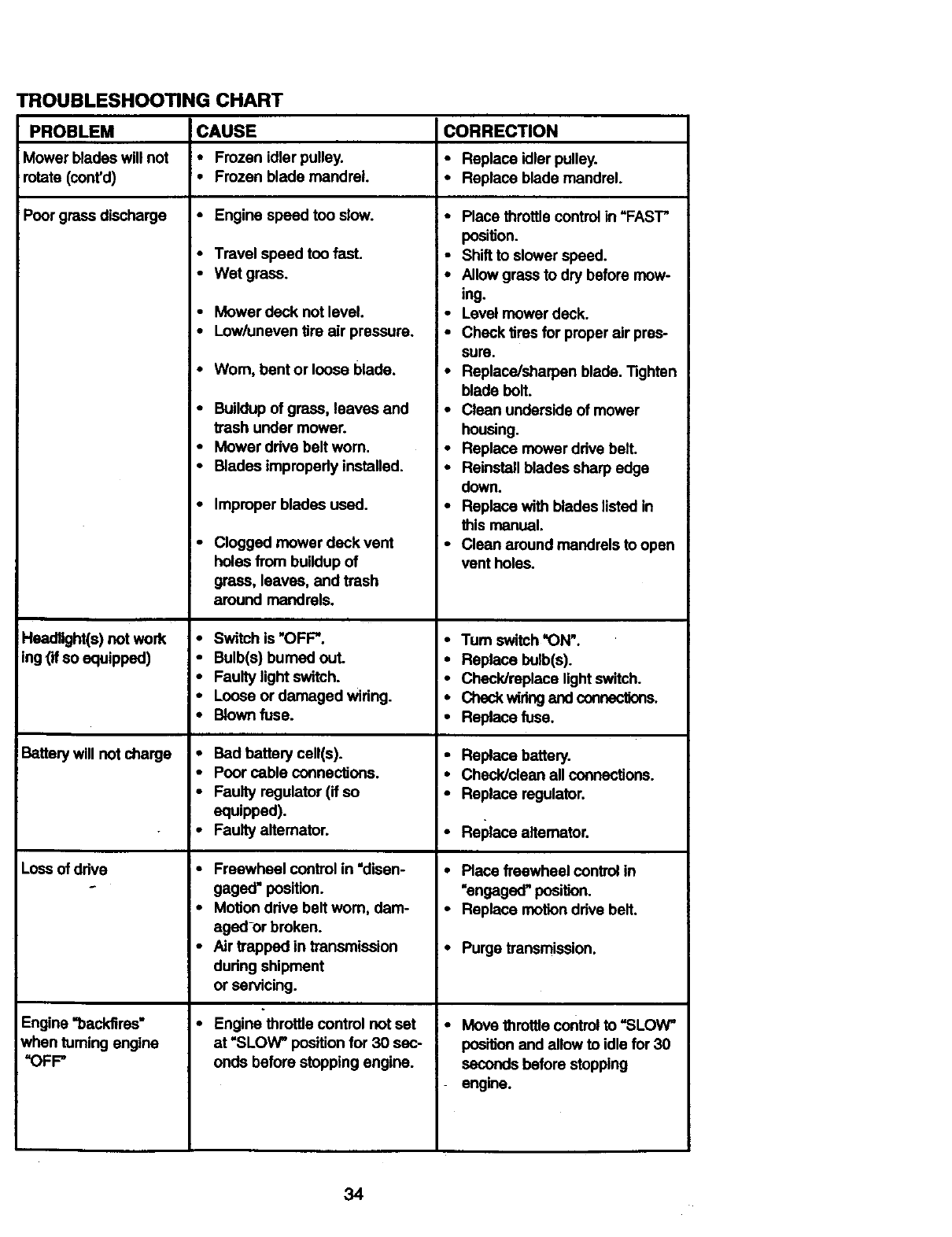 •Repairs necessary because of operator abuse, negligence, improper storage or acci-
