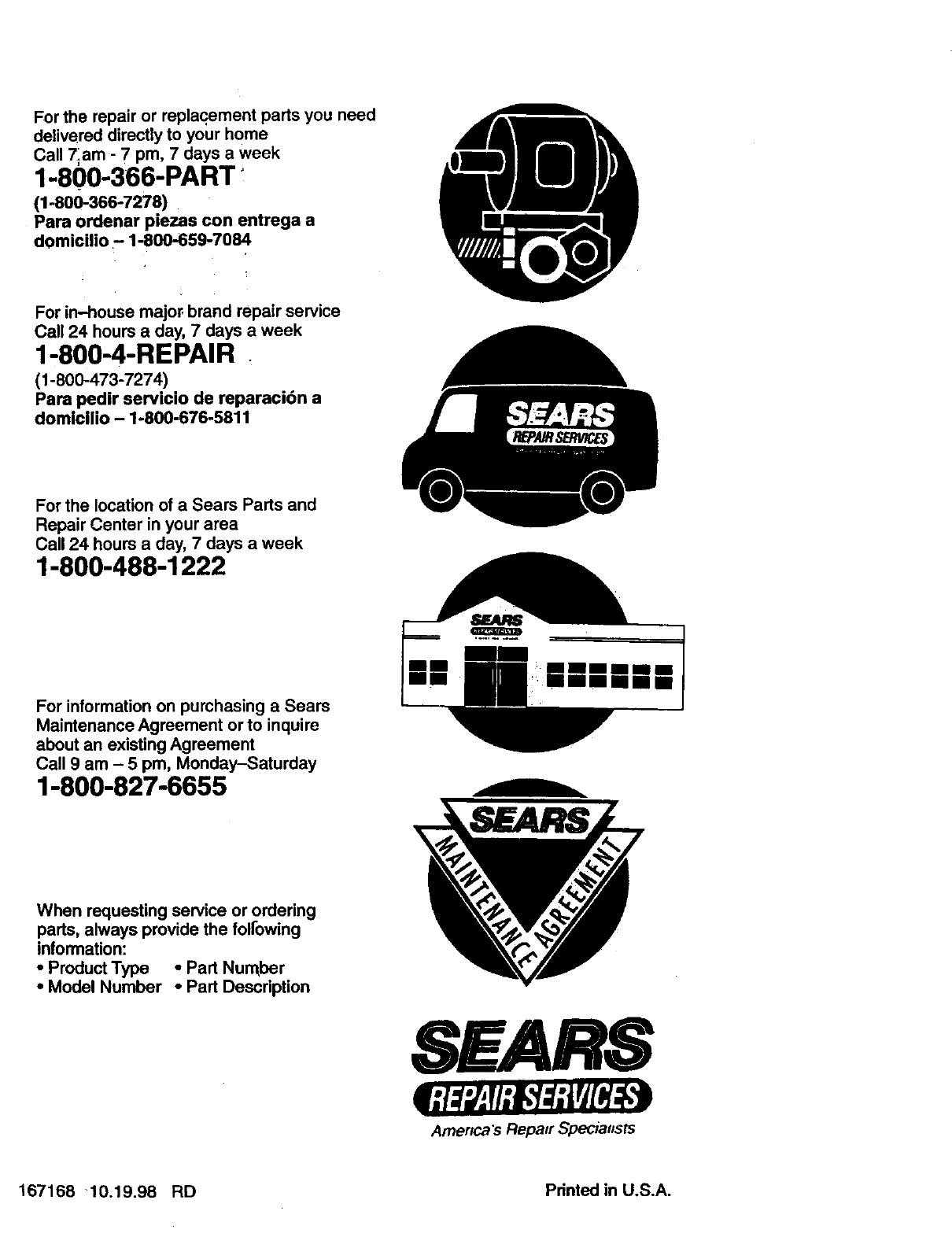 ment to your nearest Sears Service Center. (In-home warranty service will still be avail-