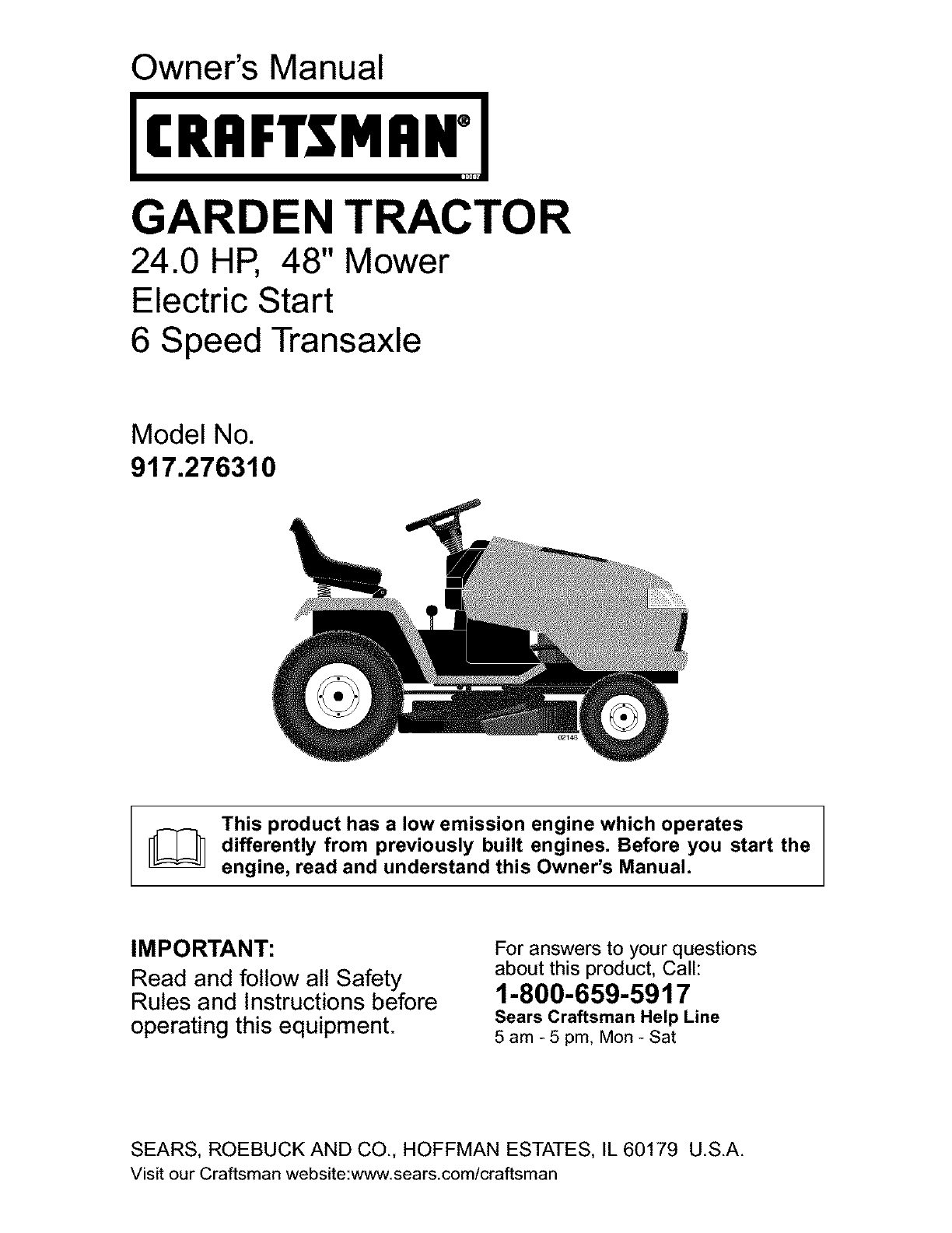 917276310 917276310 CRAFTSMAN GARDEN TRACTOR - Manuals and Guides L0412033 View the owners manual for your CRAFTSMAN GARDEN TRACTOR #917276310. Home:Lawn & Garden Parts:Craftsman Parts:Craftsman GARDEN TRACTOR Manual