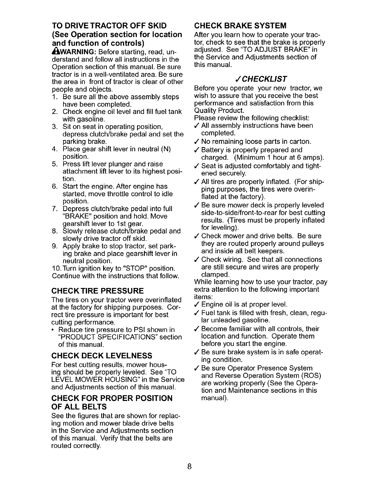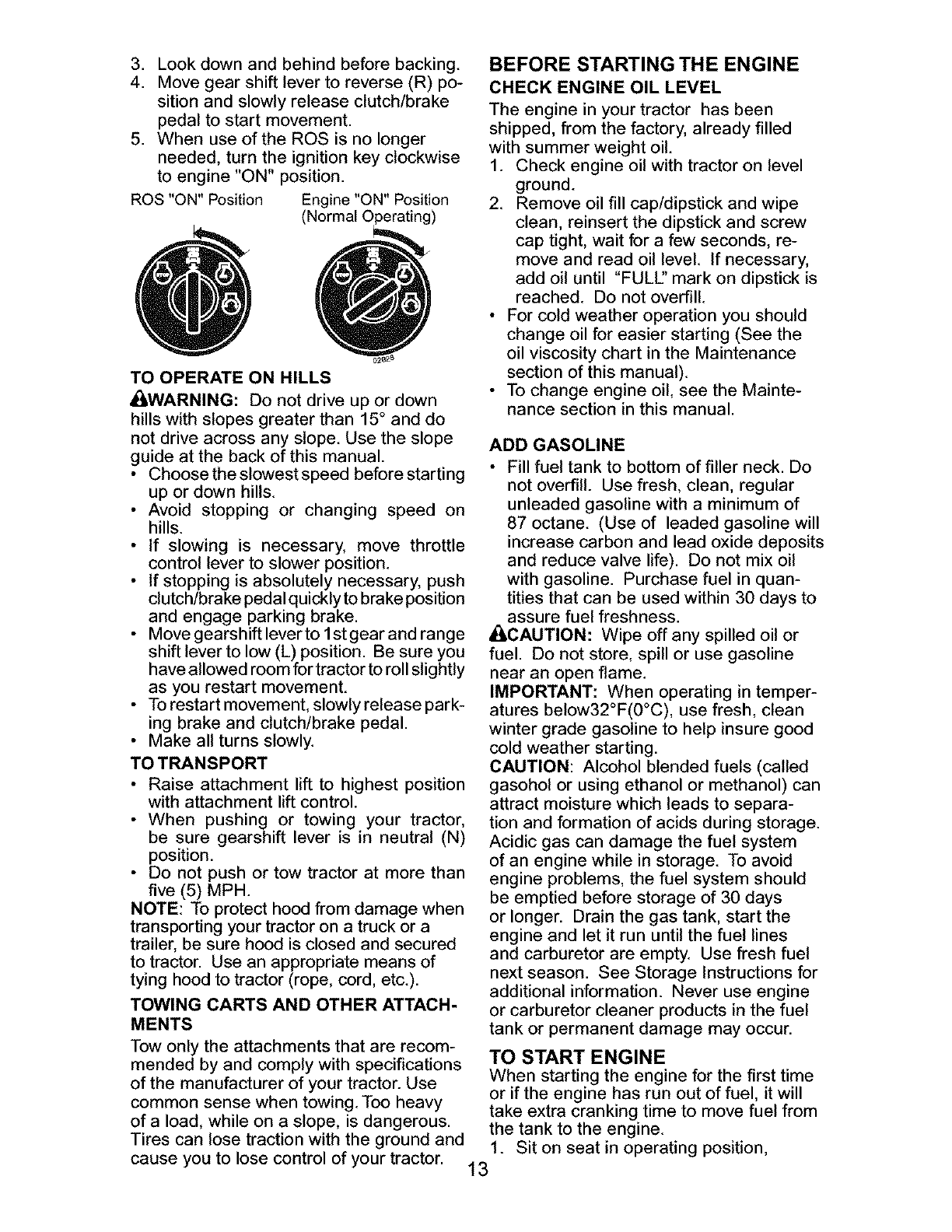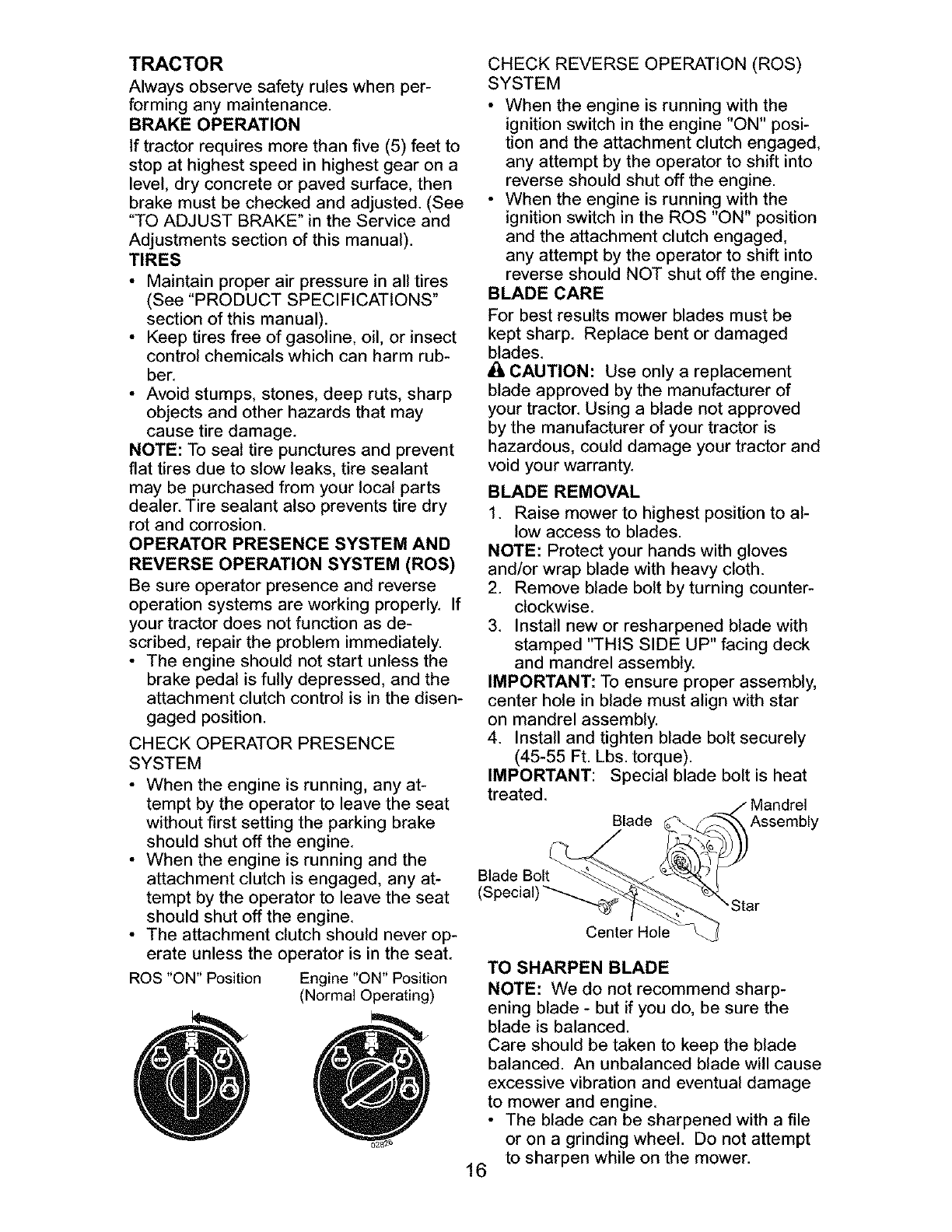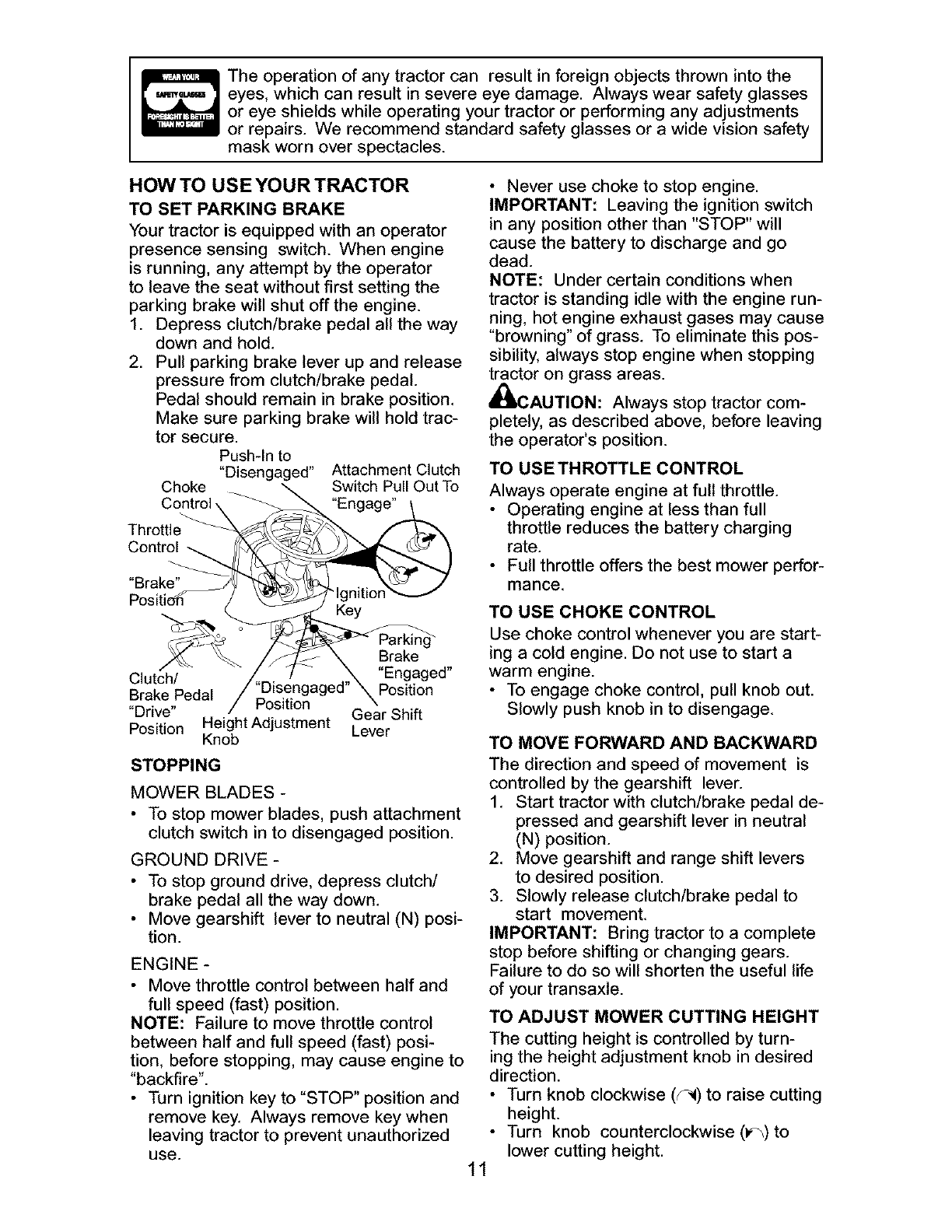 _ARNING: To avoid serious injury, operate your tractor up and
