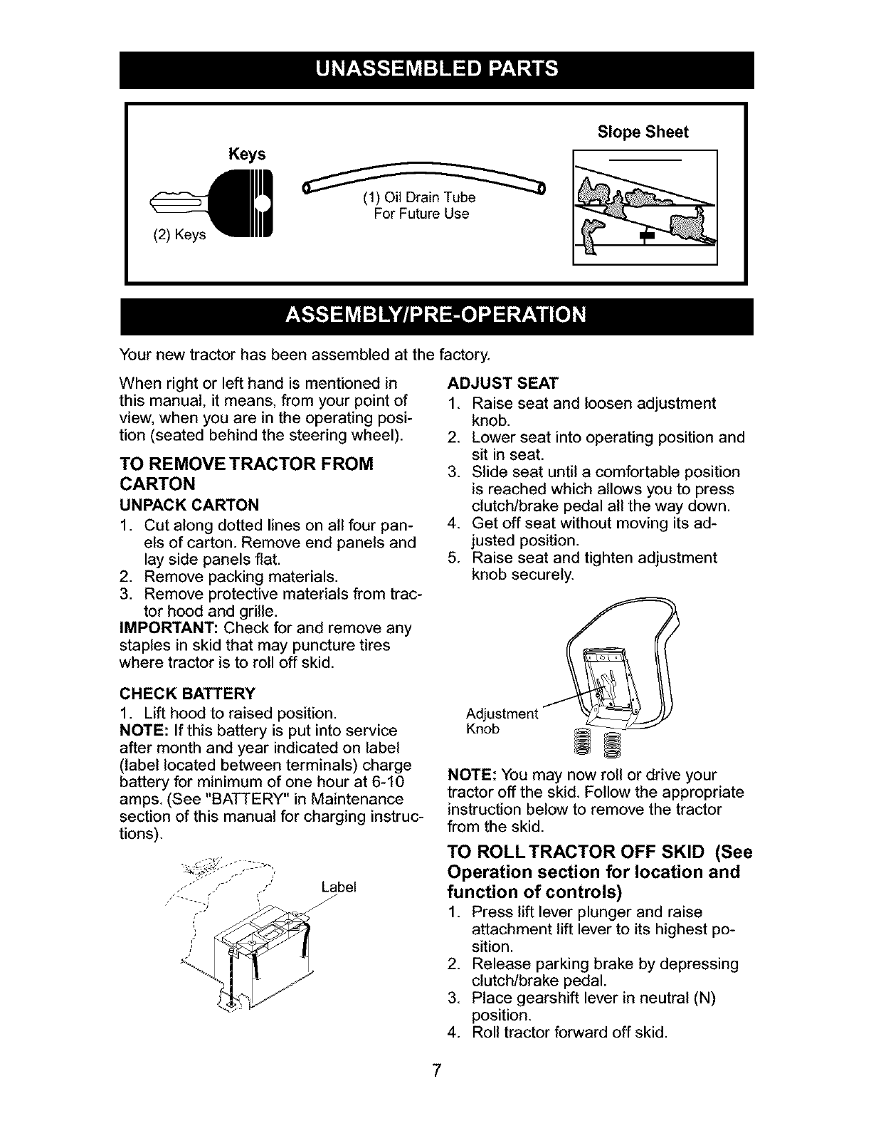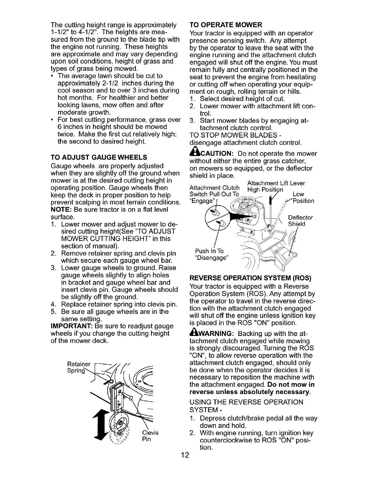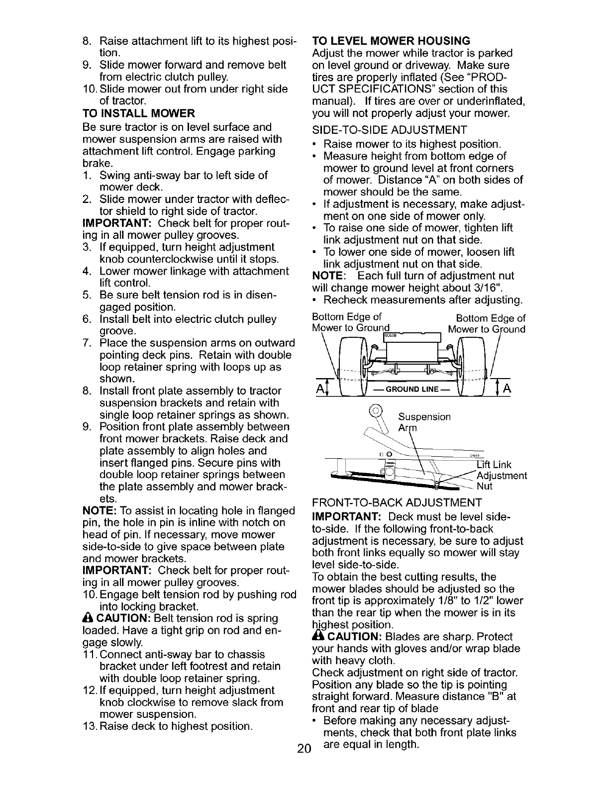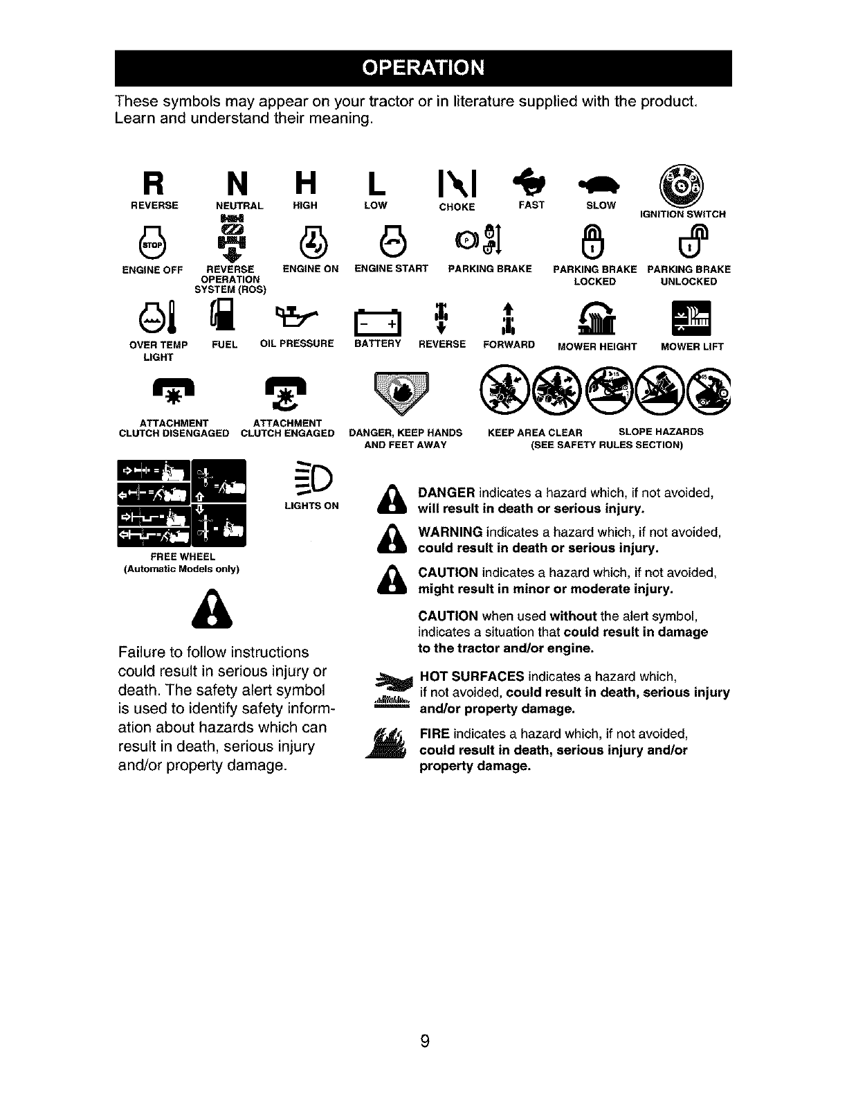_ARNING: To avoid serious injury, operate your tractor up and