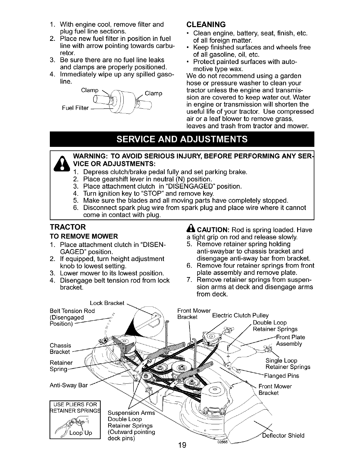 Service and Adjustments ..................... 19