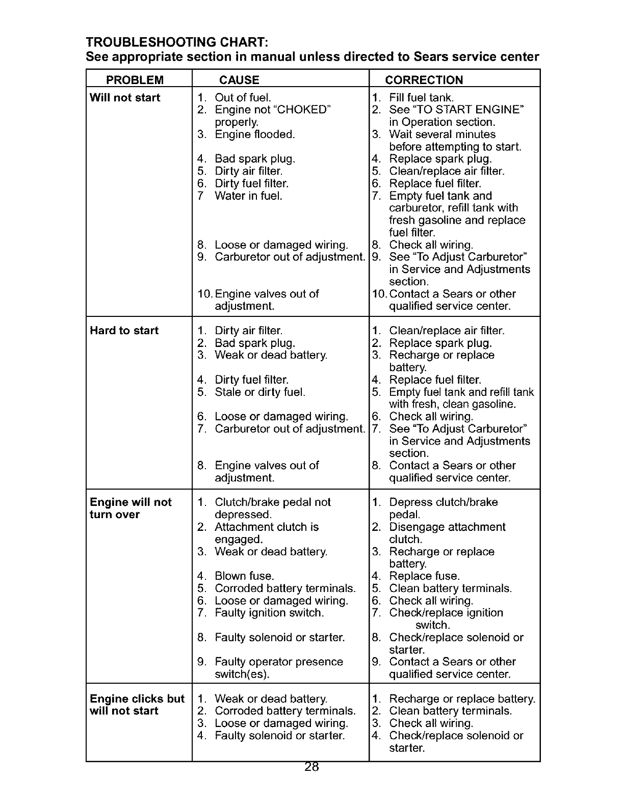 Sears Service ........................ Back Cover