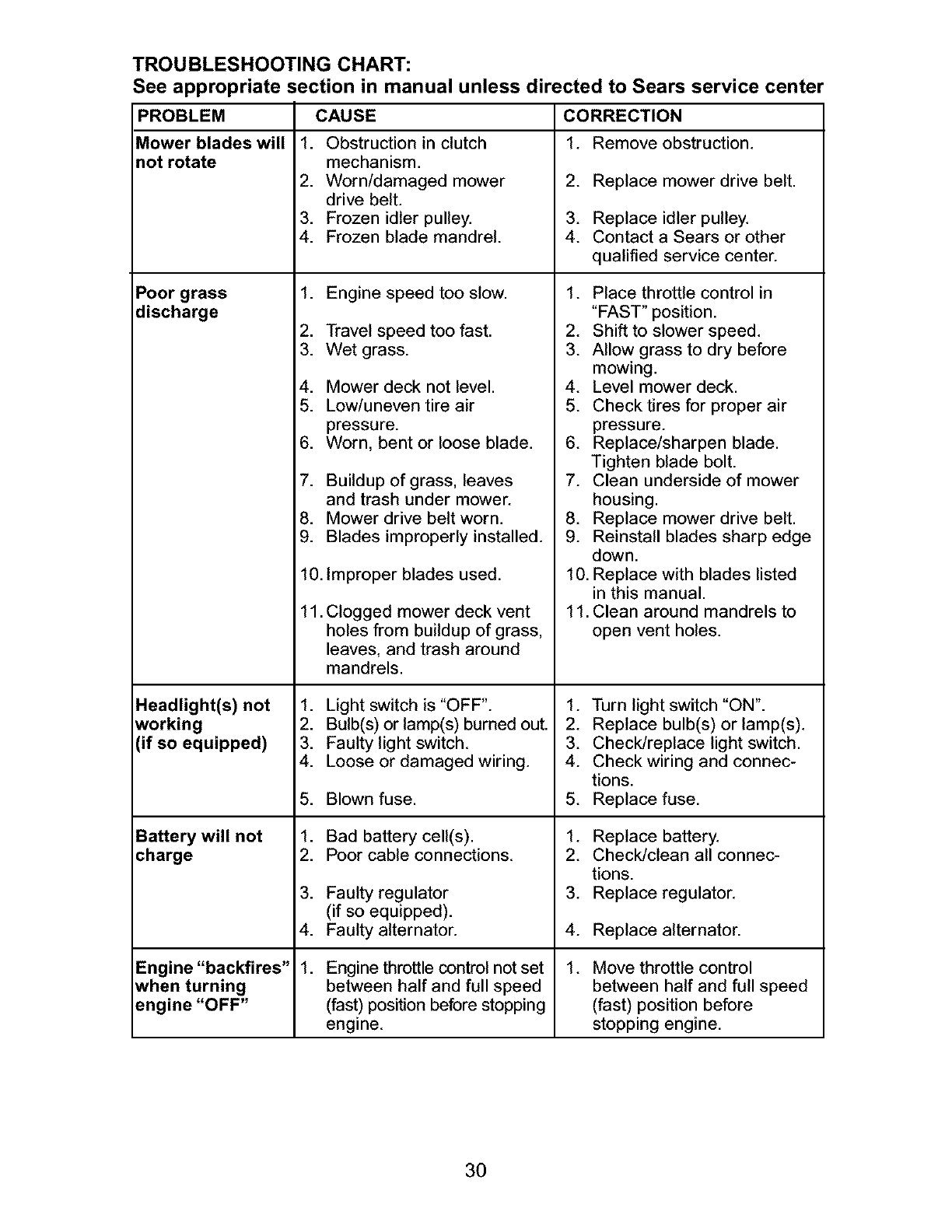 will not hold a charge, Sears will replace the battery at no charge. During the first 30