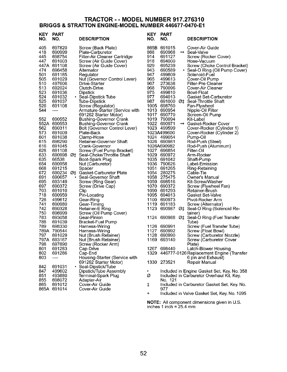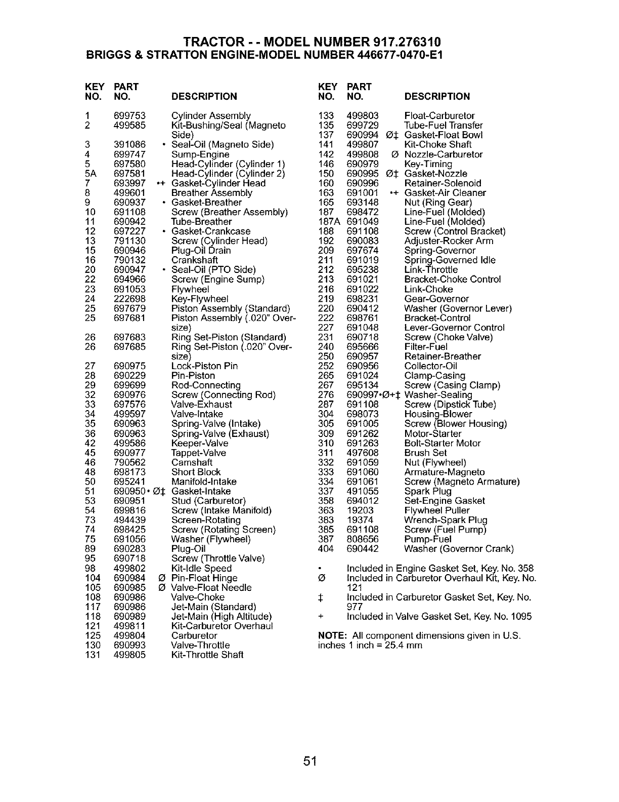 $ Included in Carburetor Gasket Set, Key. No.