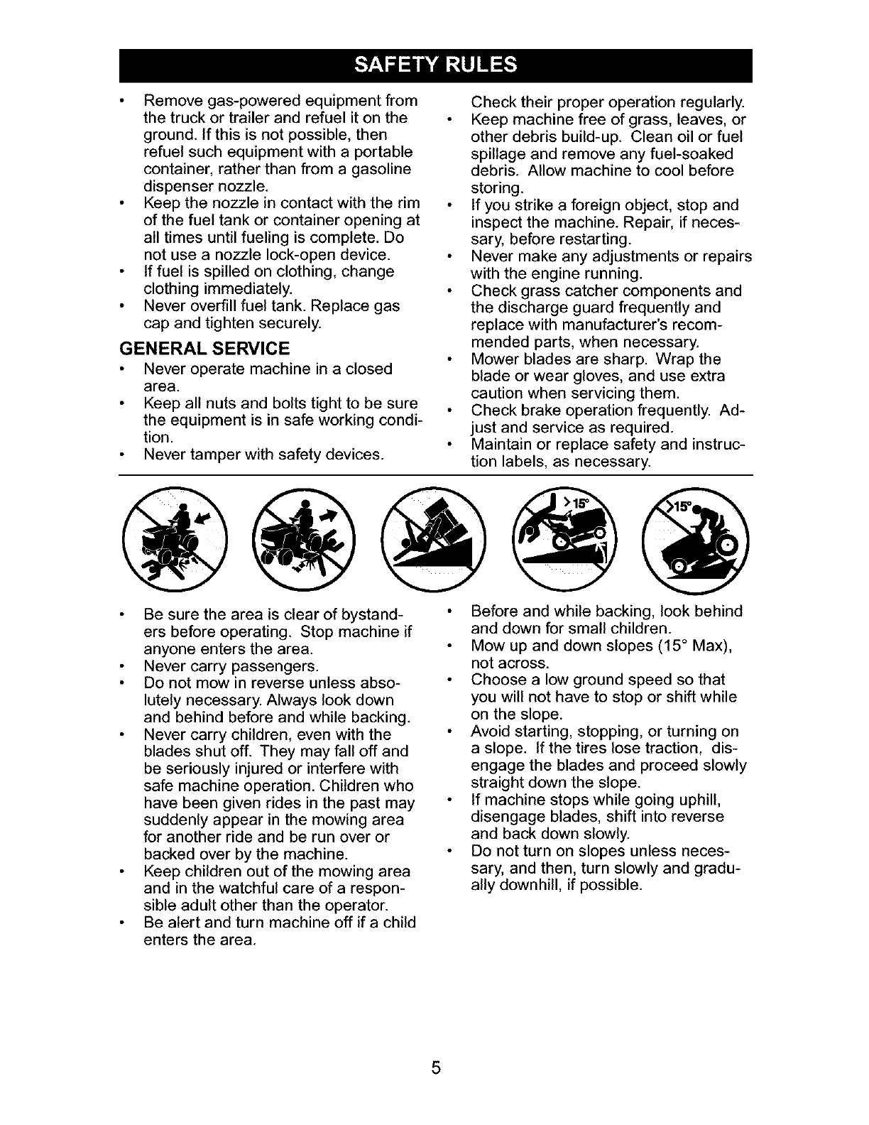 down the face of slopes, never across the face. Do not mow