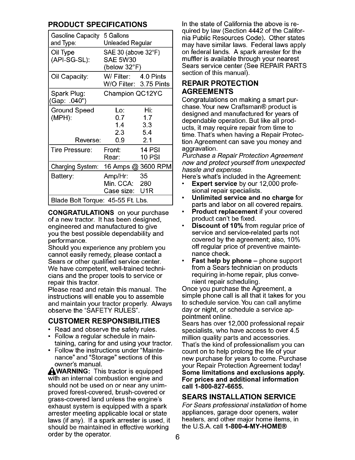 Sears Craftsman Help Line
