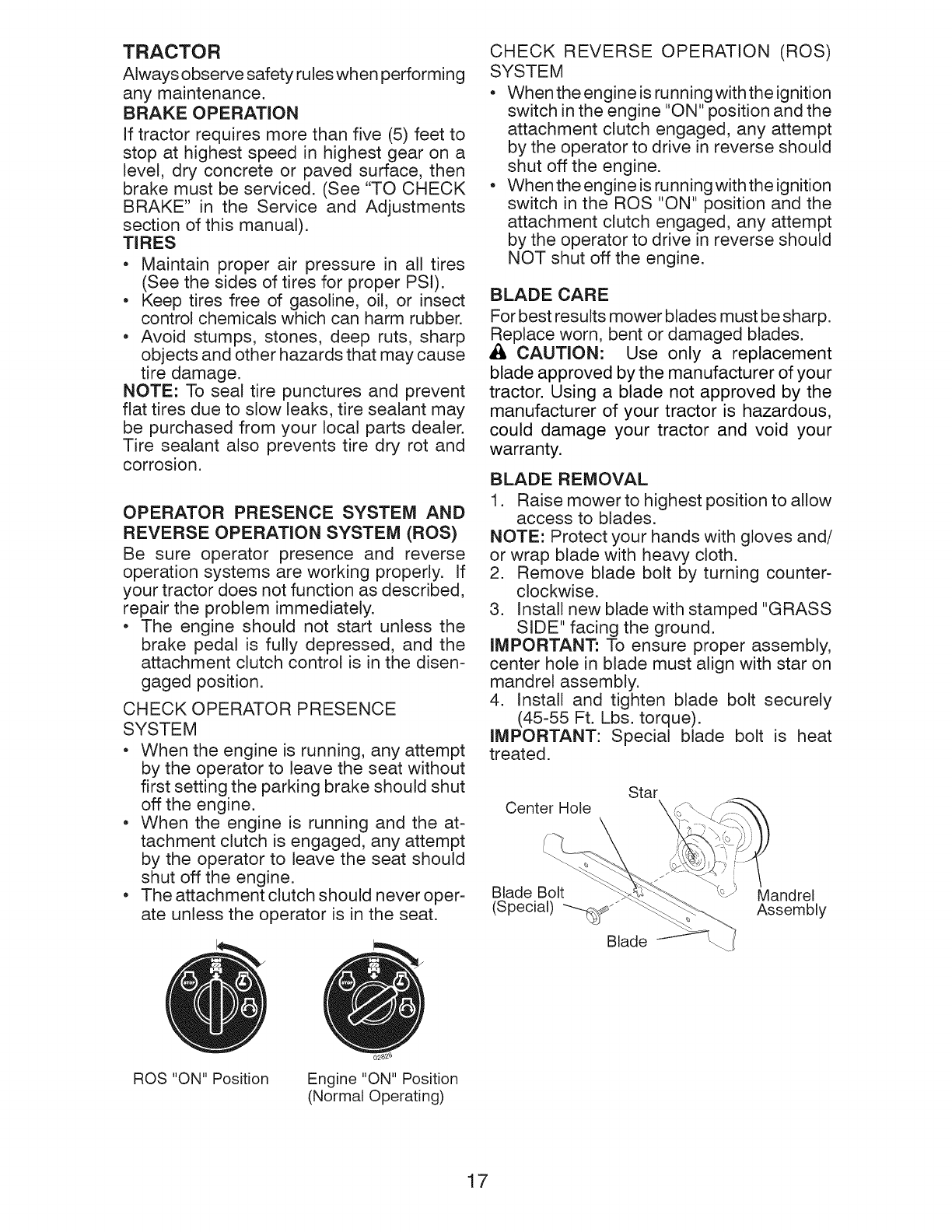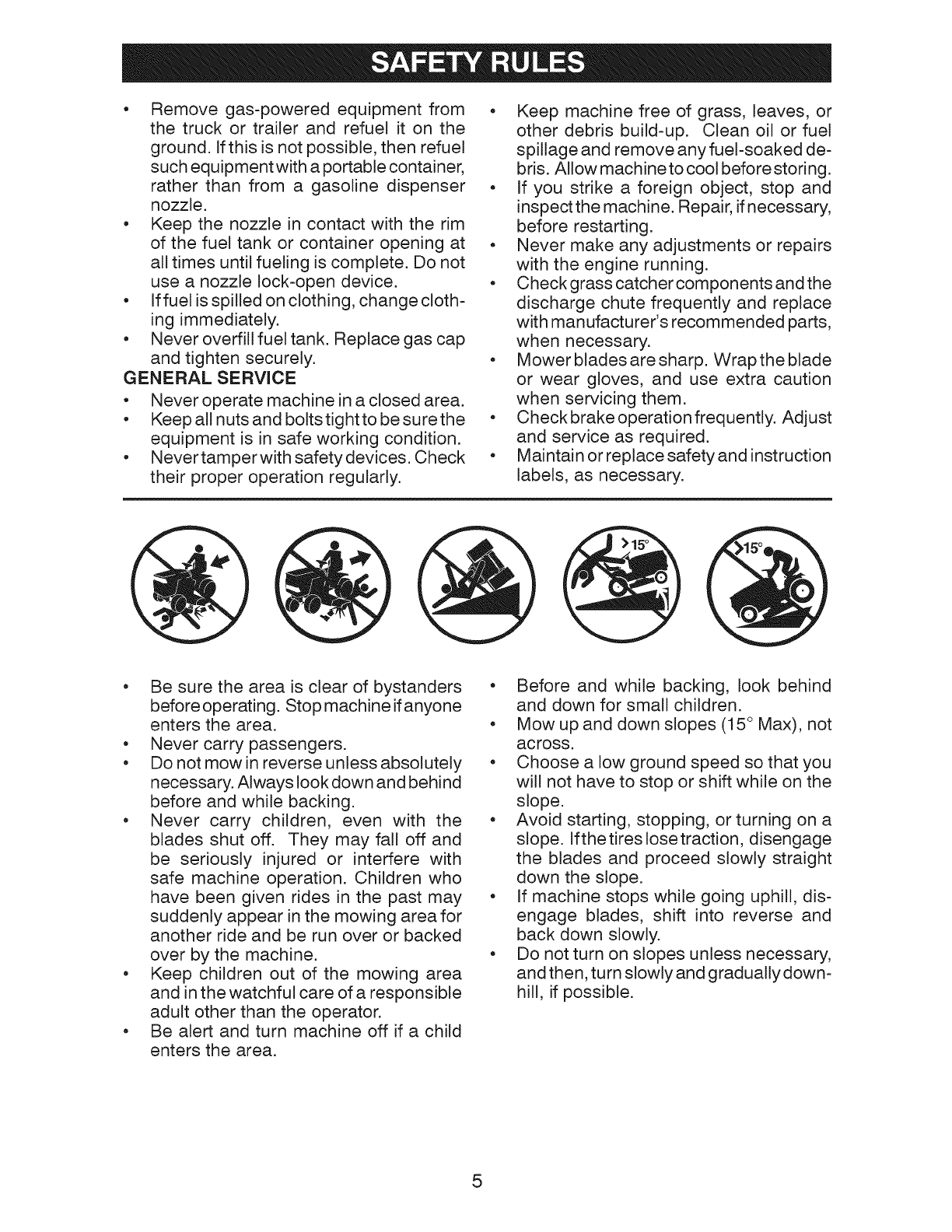 and amount of engine oil, failure to keep the deck clear of flammable debris, or failure to
