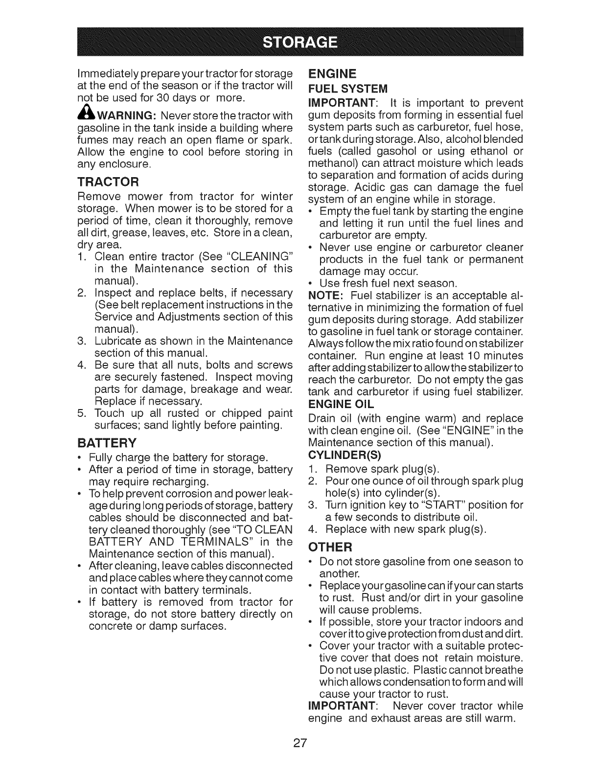 Storage .................................................. 27