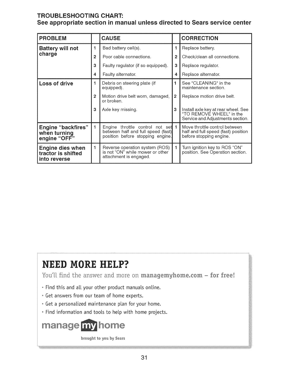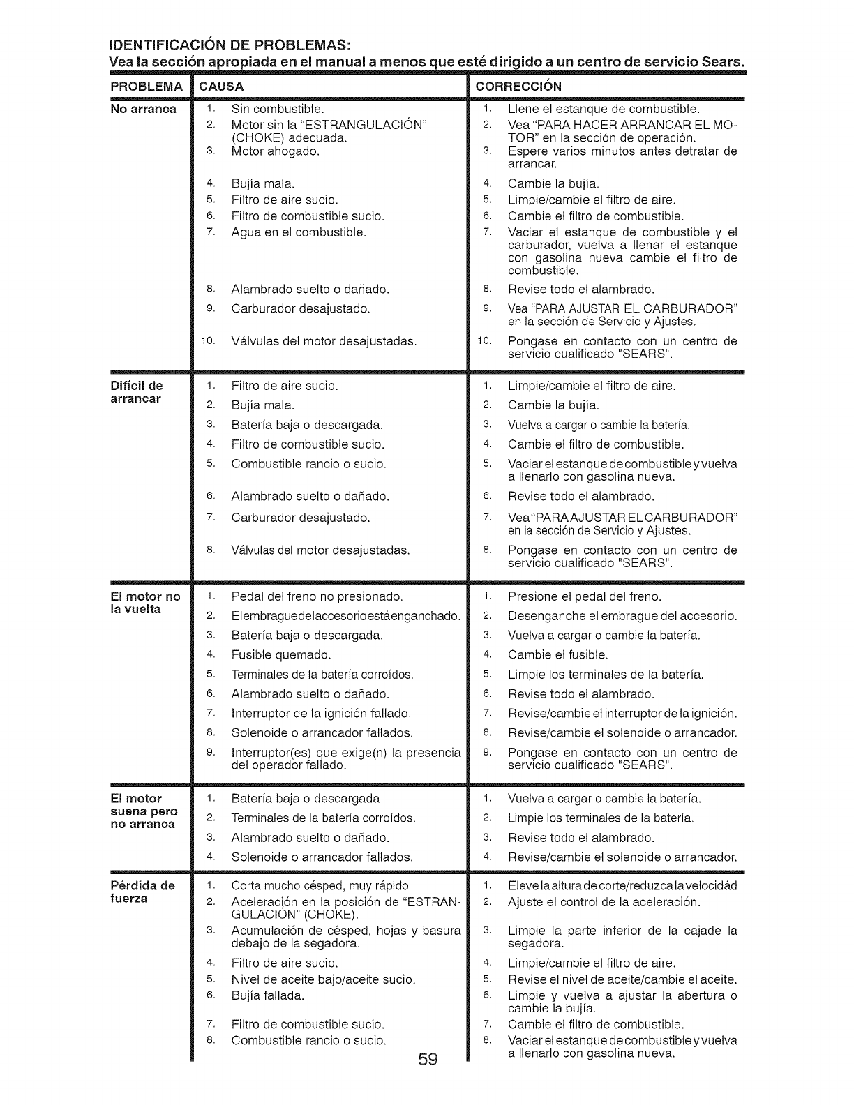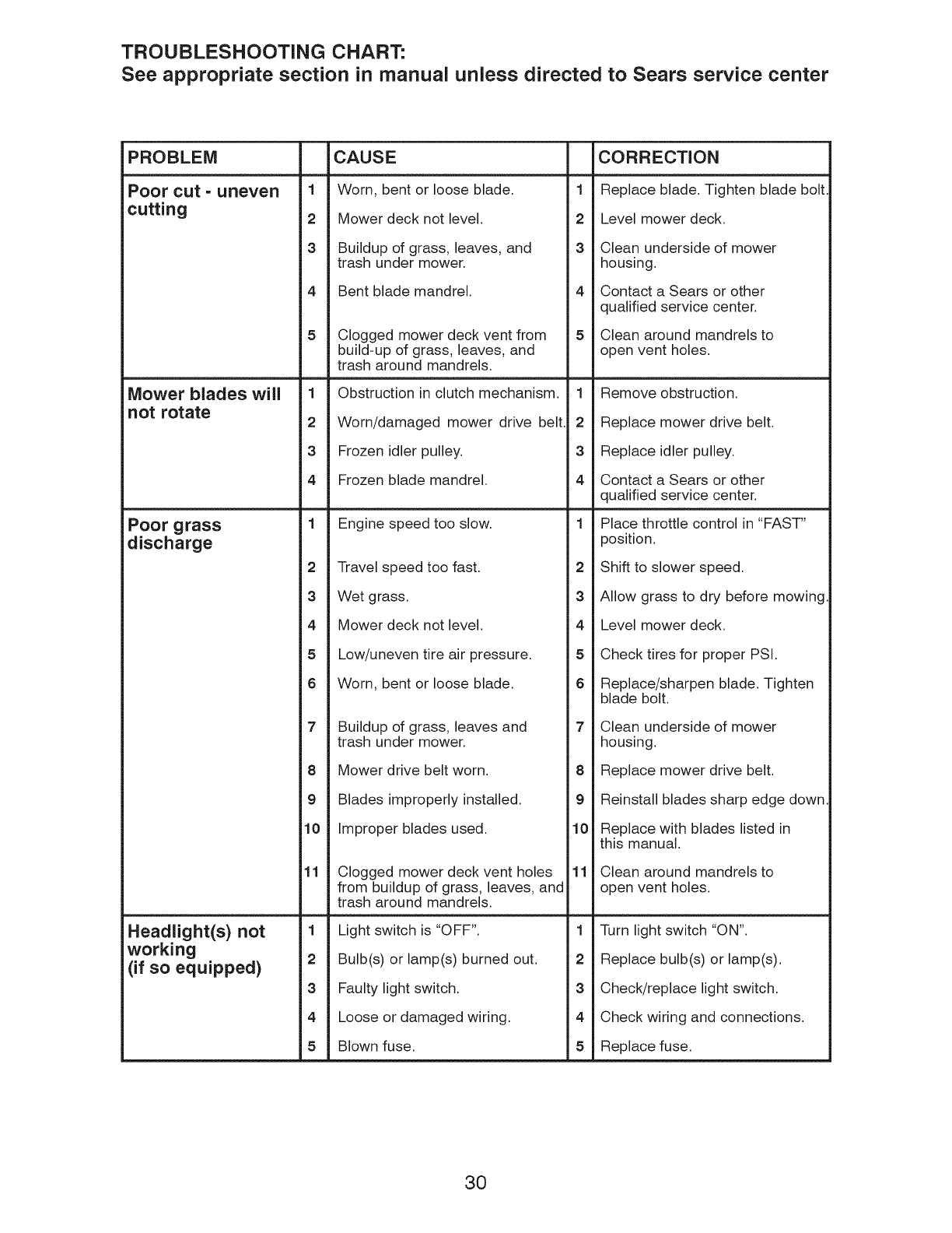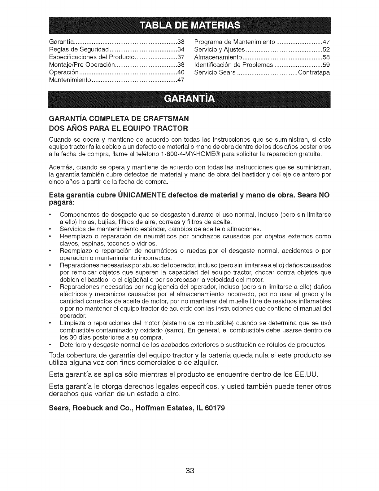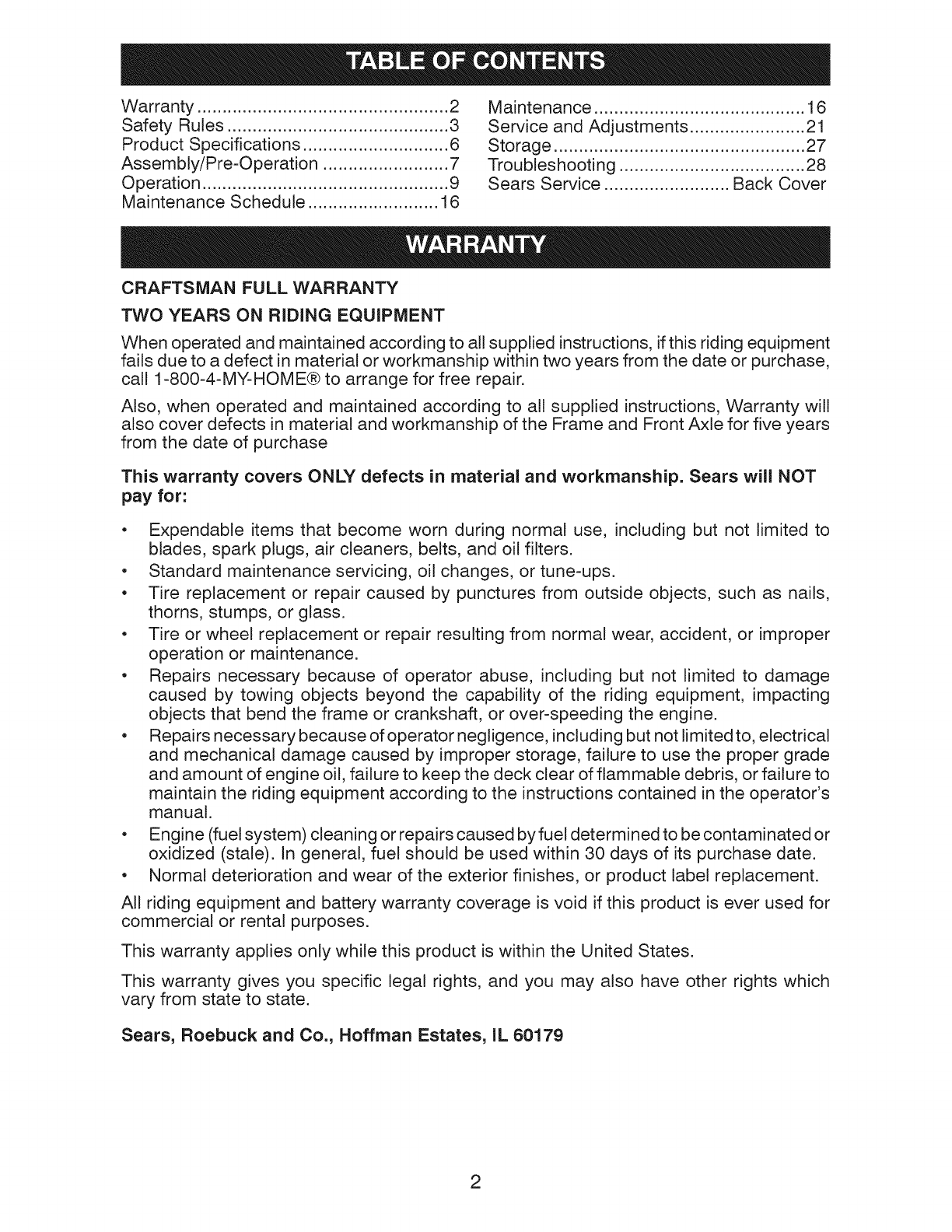 Sears Service ......................... Back Cover