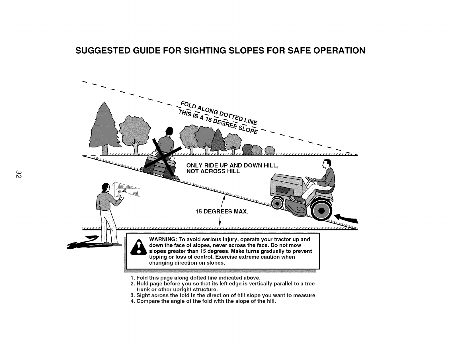 3. Mirar a traves dei pliegue en direccibn de la pendiente que se quiere medir.