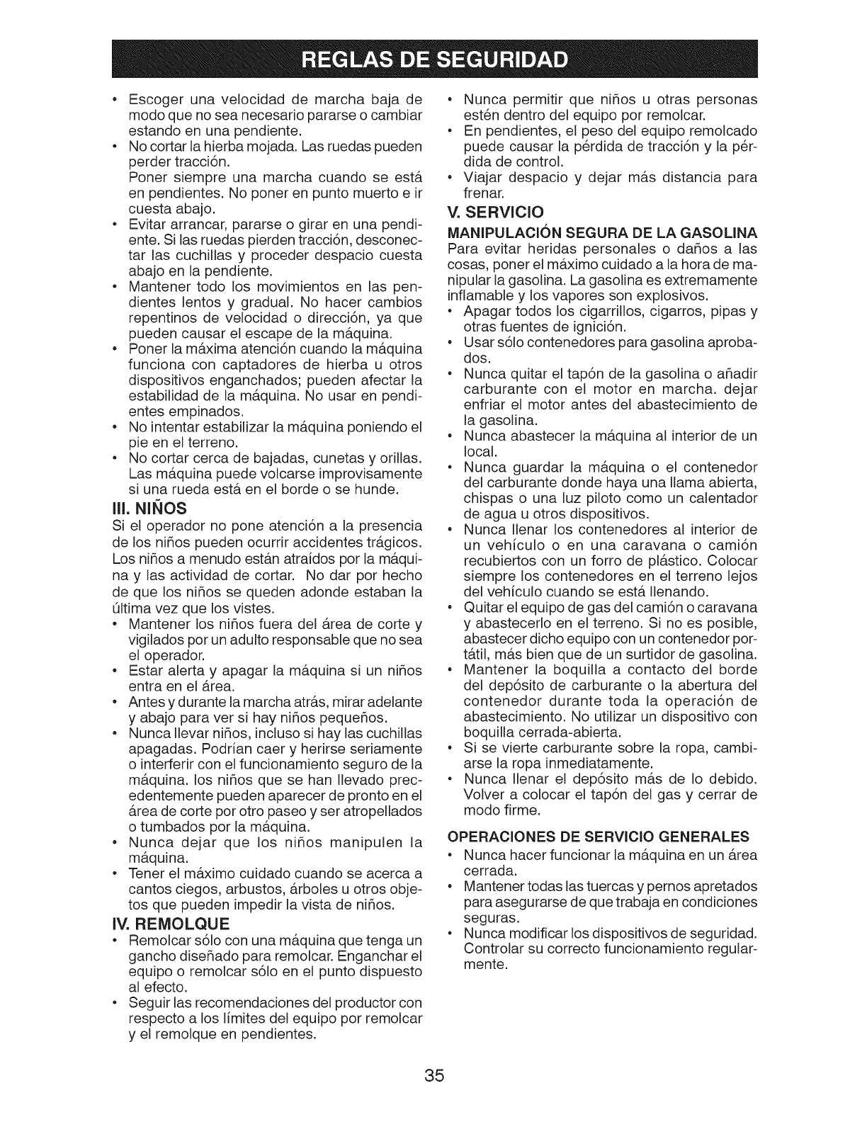 Tenga mucho cuidado cuando cambie de direcci6n en las pendientes.