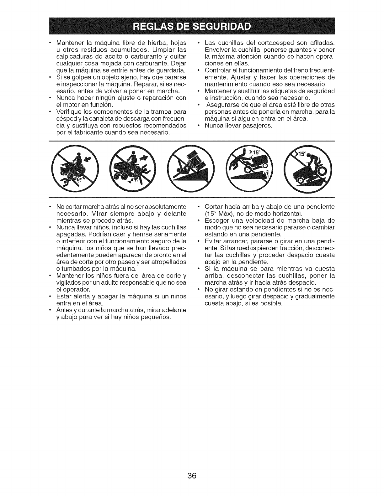 pendientes. No cortar pendientes mayores de 15 grados. Haga los