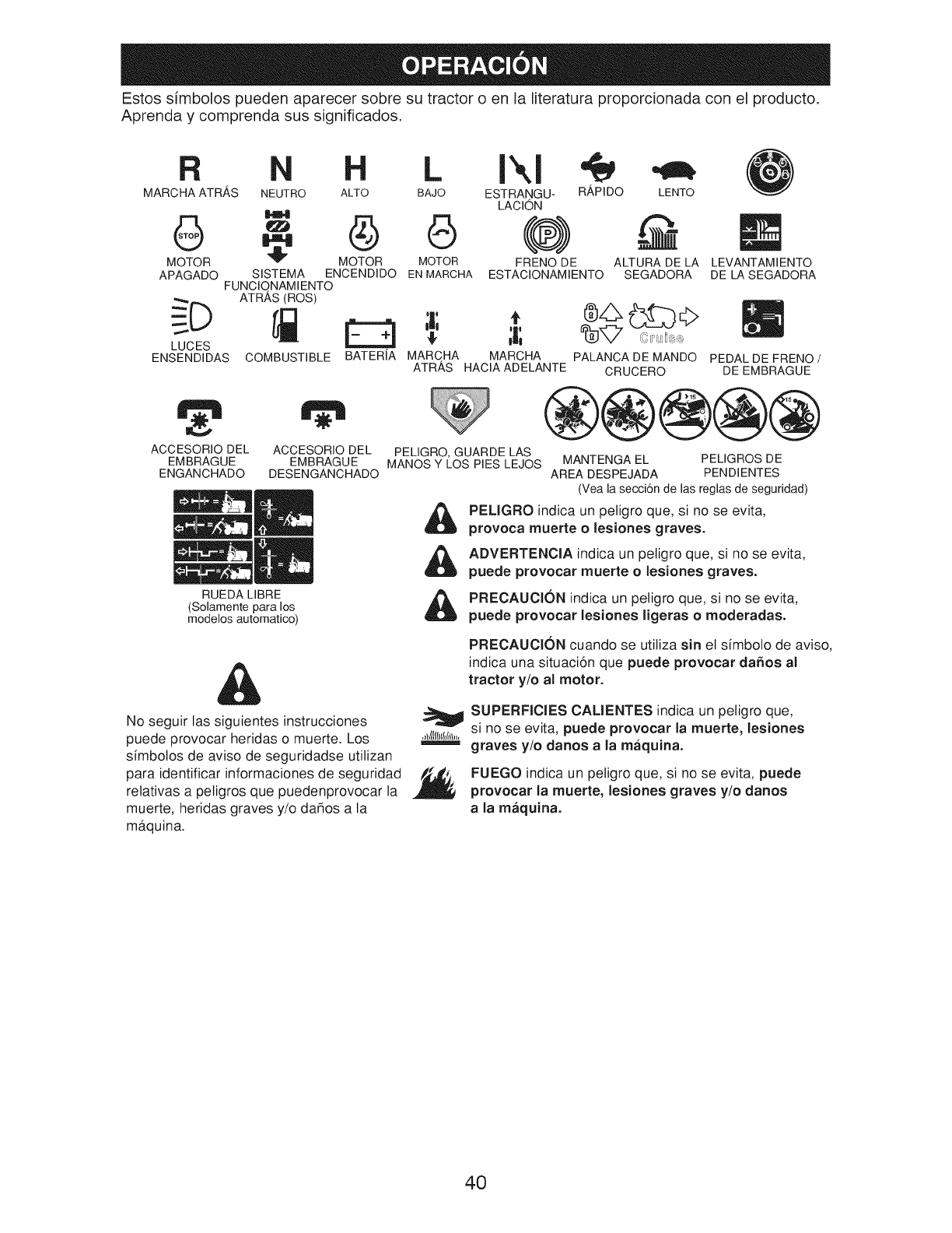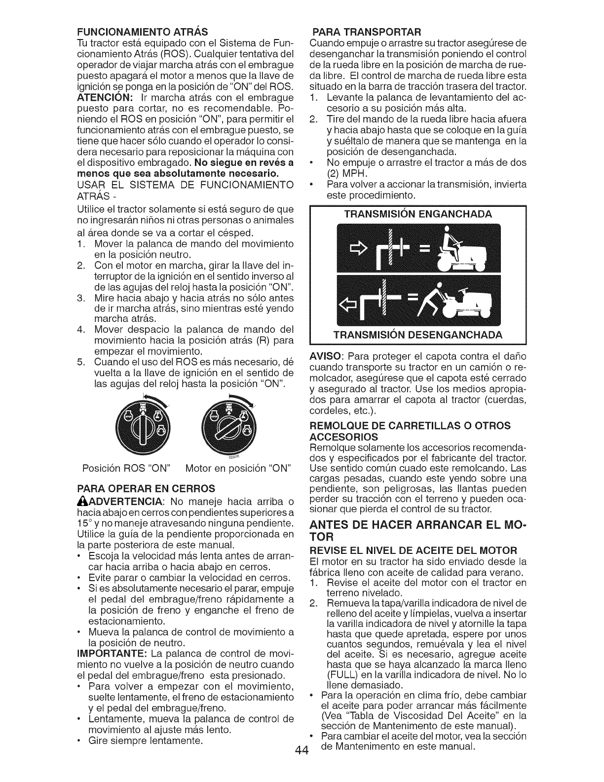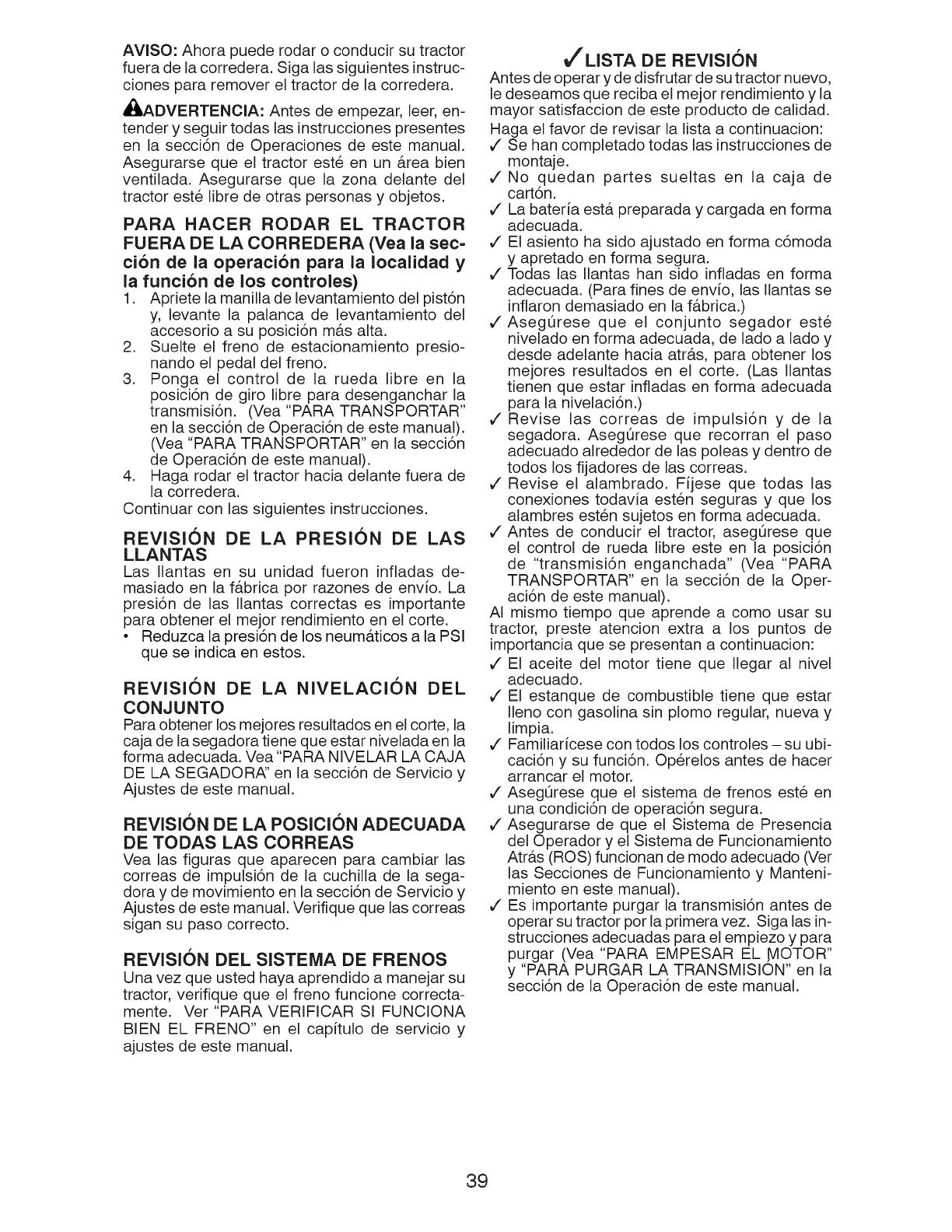 ADVERTENCIA: Para evitar da_os graves, haga funcionar su tractor arriba