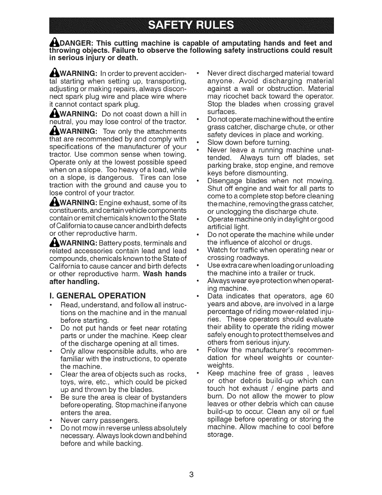 Safety Rules ............................................ 3
