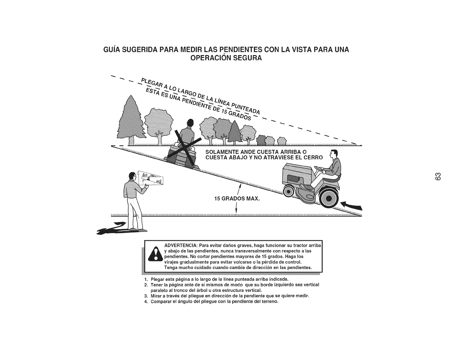y abajo de las pendientes, nunca transversalmente con respecto a las