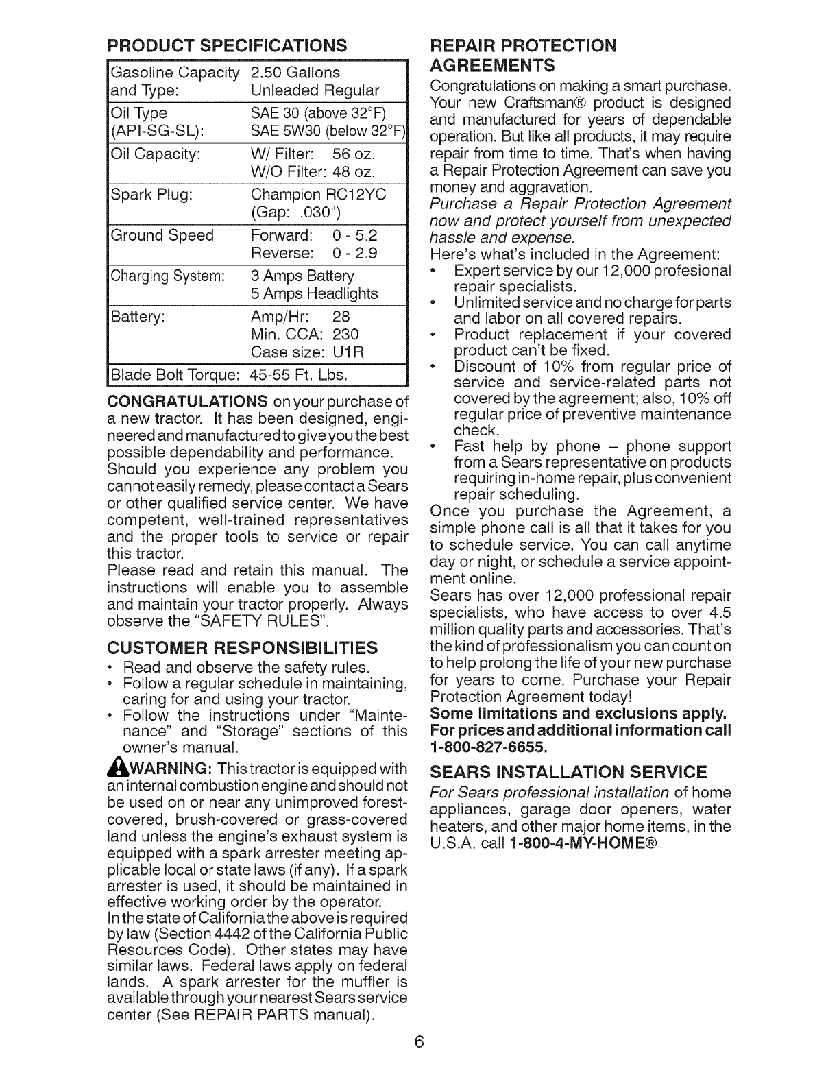 Visit our Craftsman website:www.sears.com/craftsman *As rated by the engine manufacturer