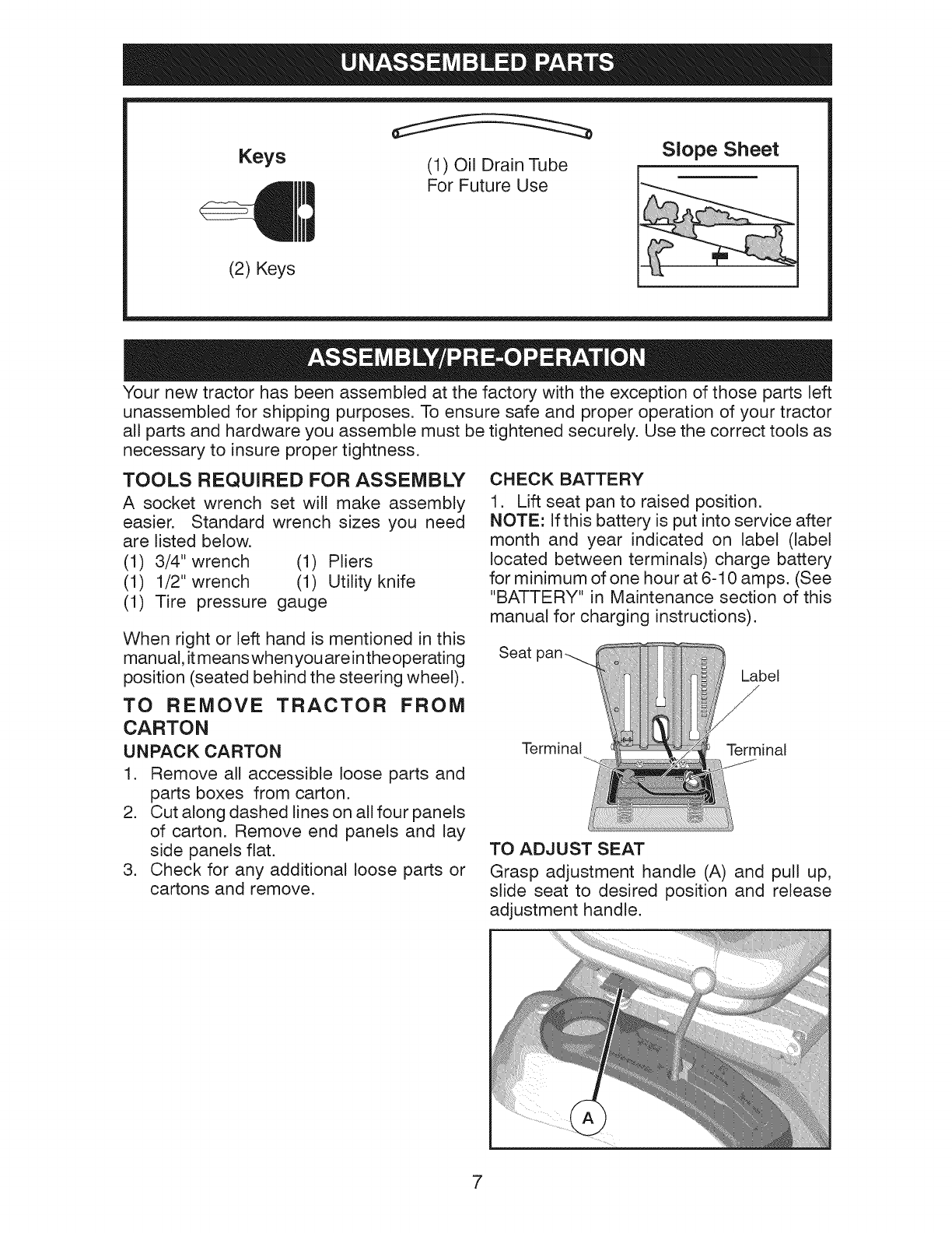 Assembly/Pre-Operation ......................... 7