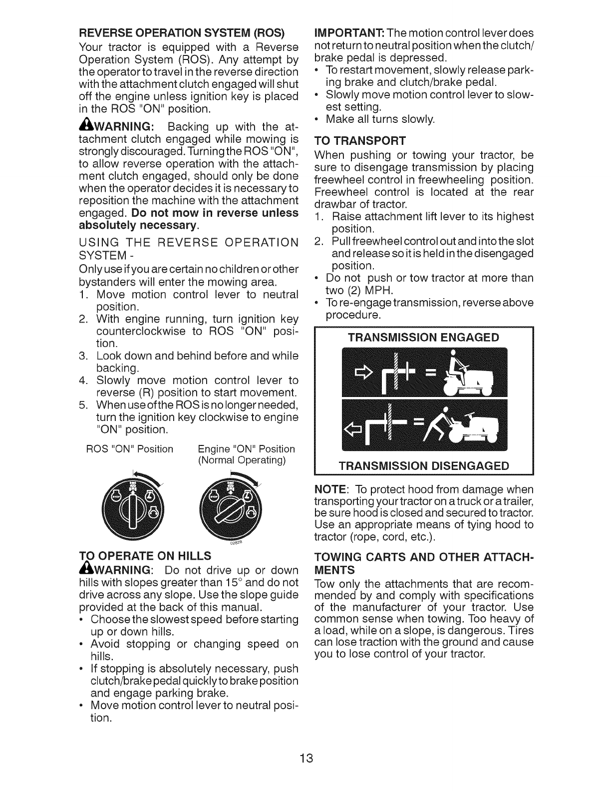 tractor. Use common sense when towing.
