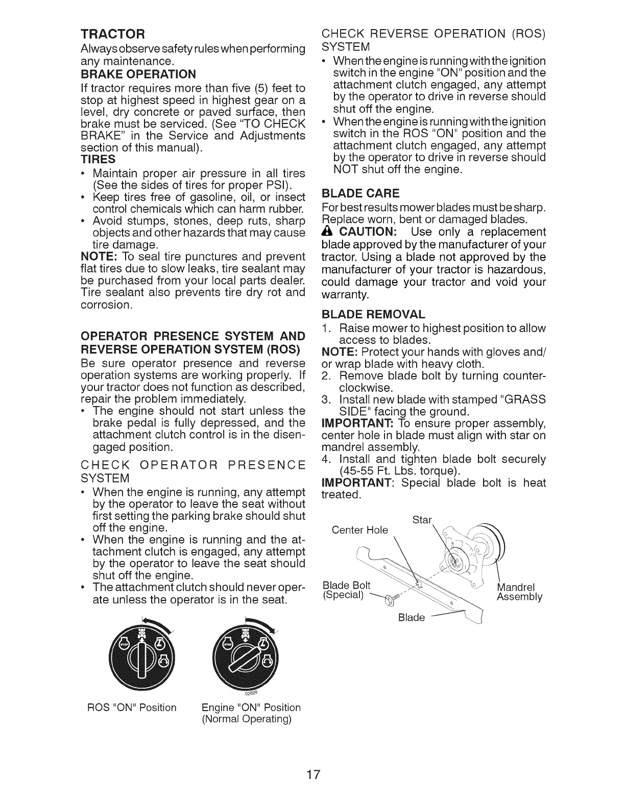 and amount of engine oil, failure to keep the deck clear of flammable debris, or failure to