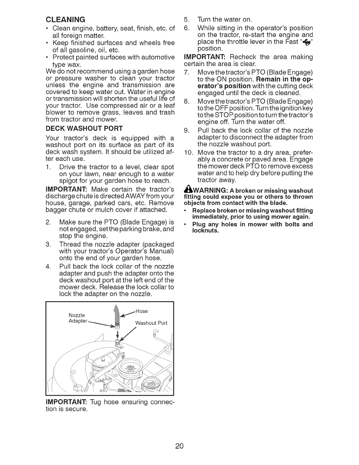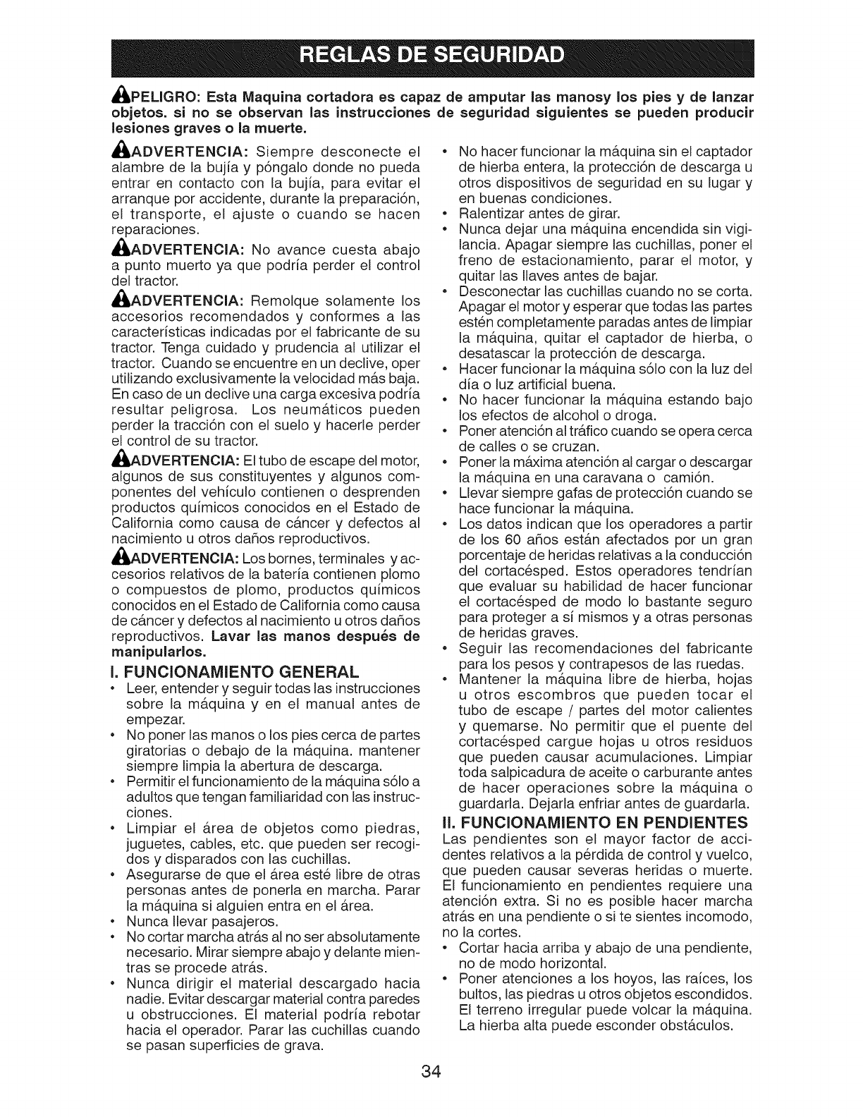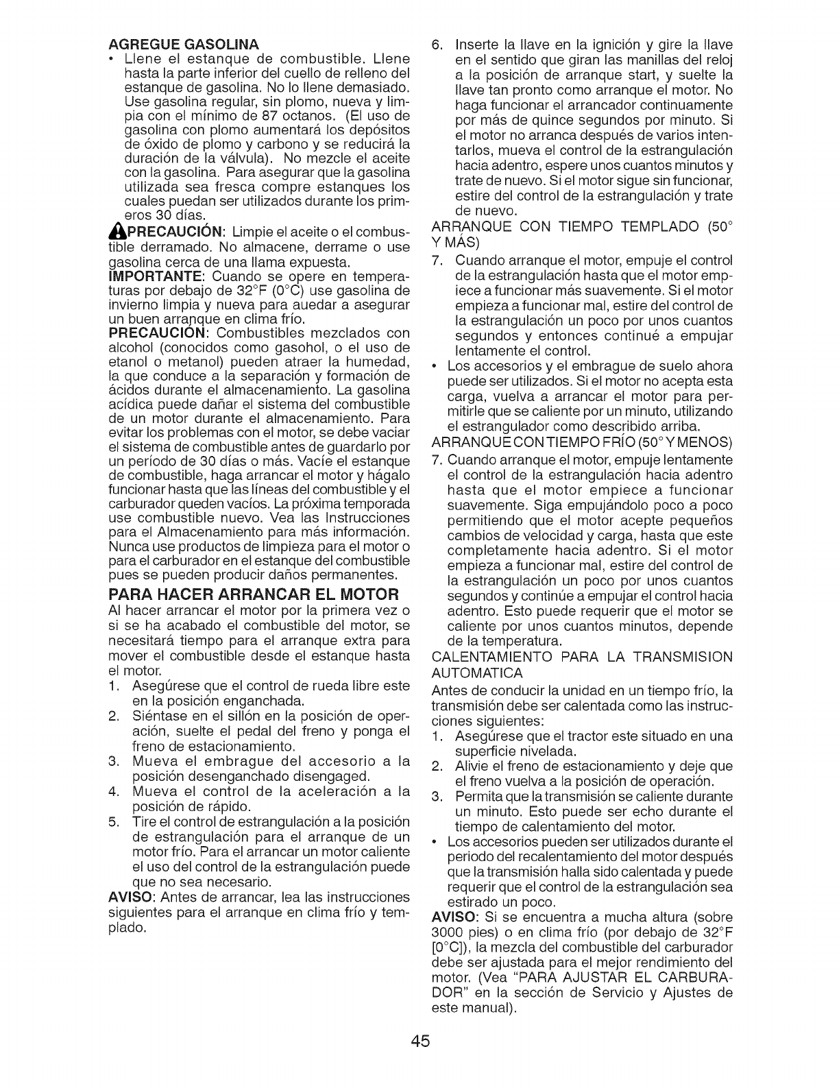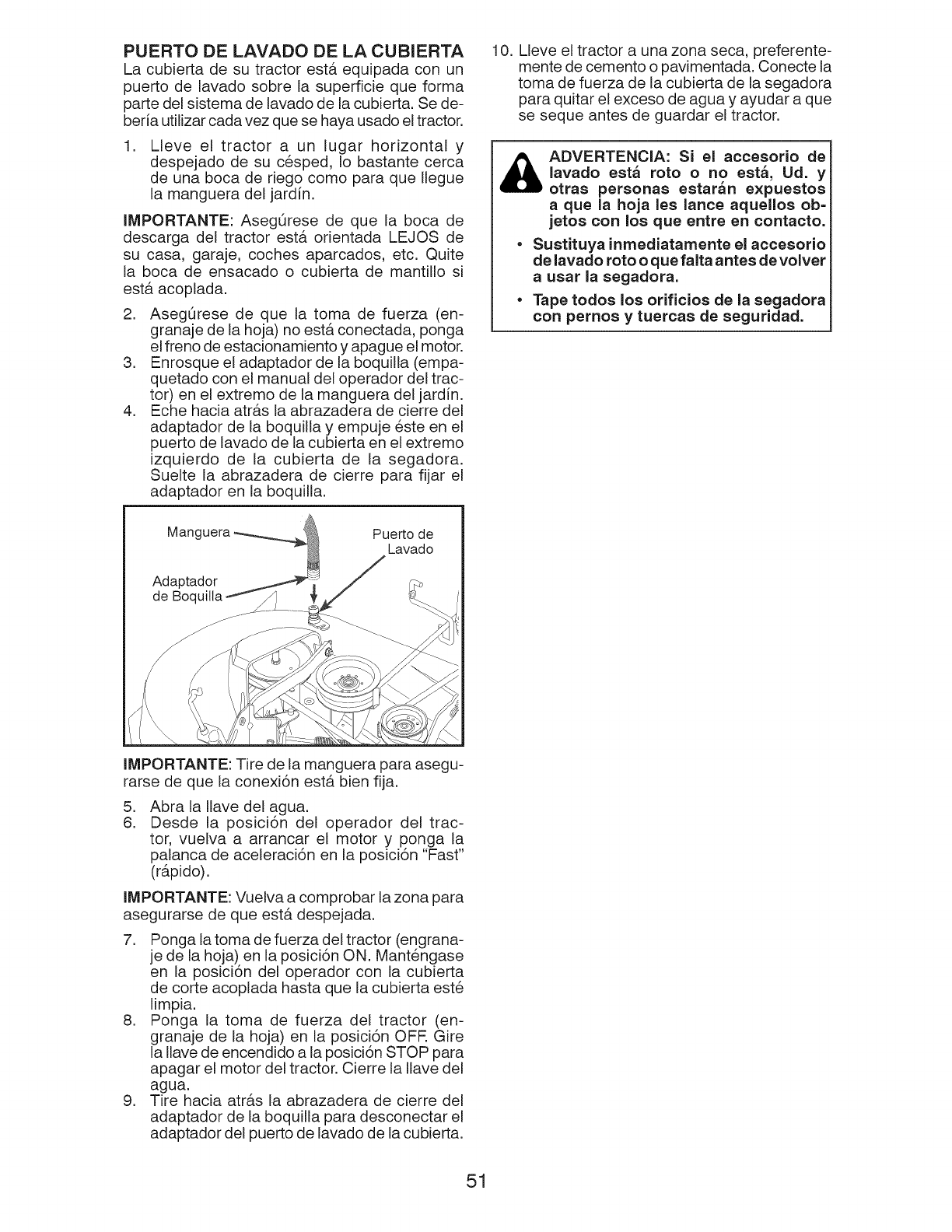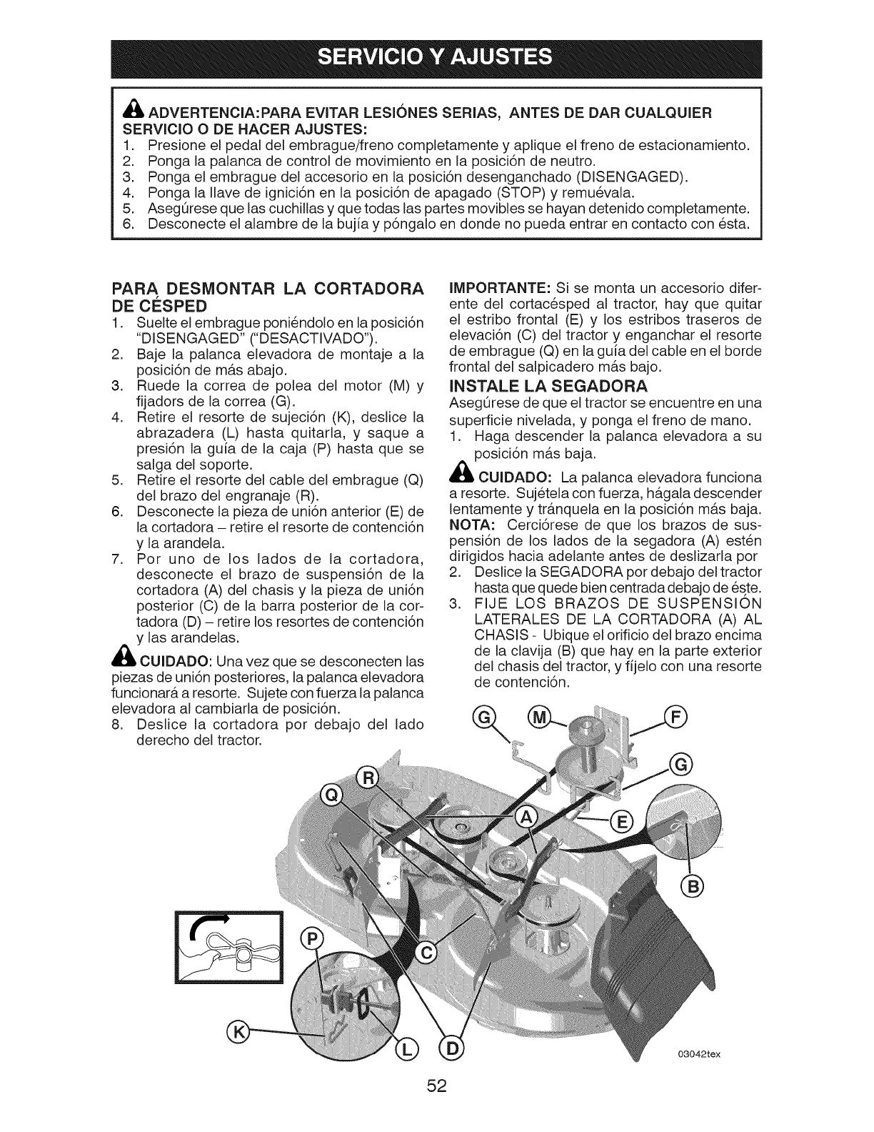 ADVERTENCIA: Para evitar dafios graves, haga funcionar su tractor arriba