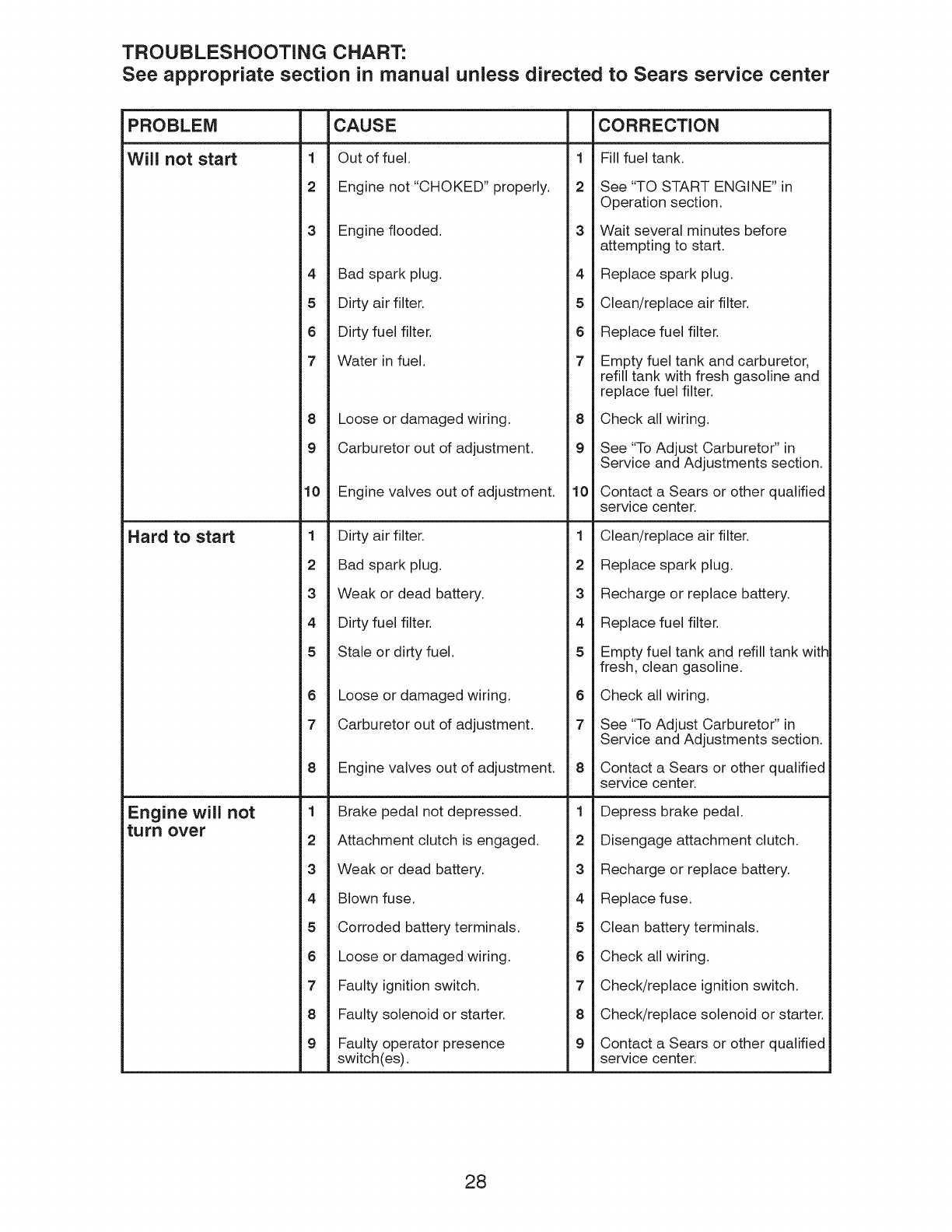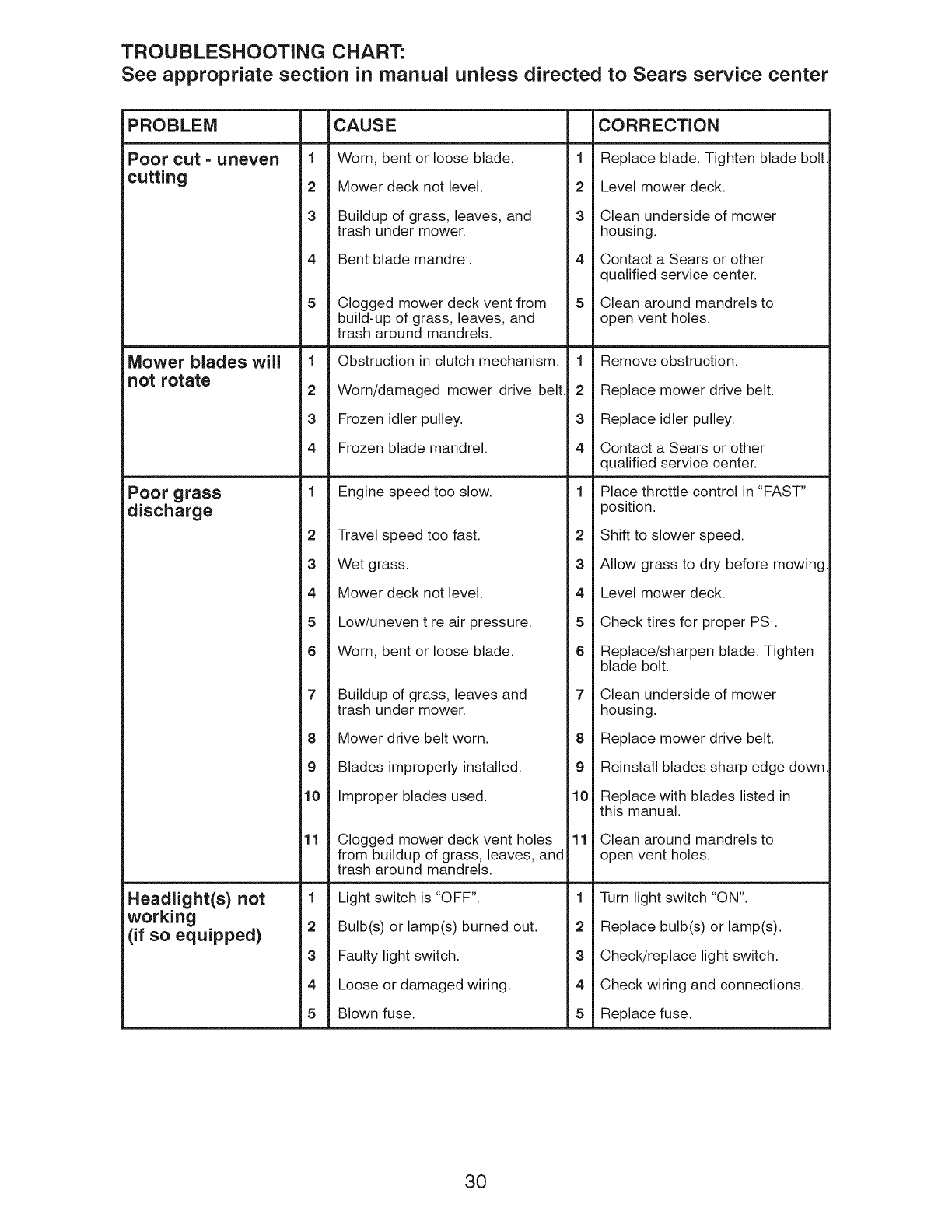 Sears Service ......................... Back Cover