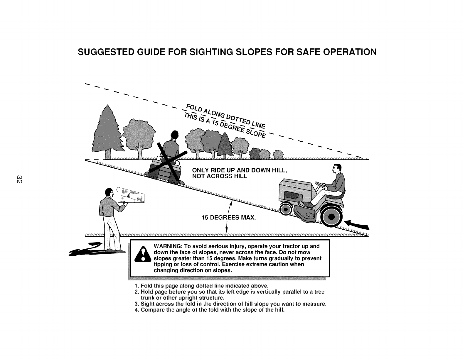 3. Mirar a traves del pliegue en direction de la pendiente que se quiere medir.