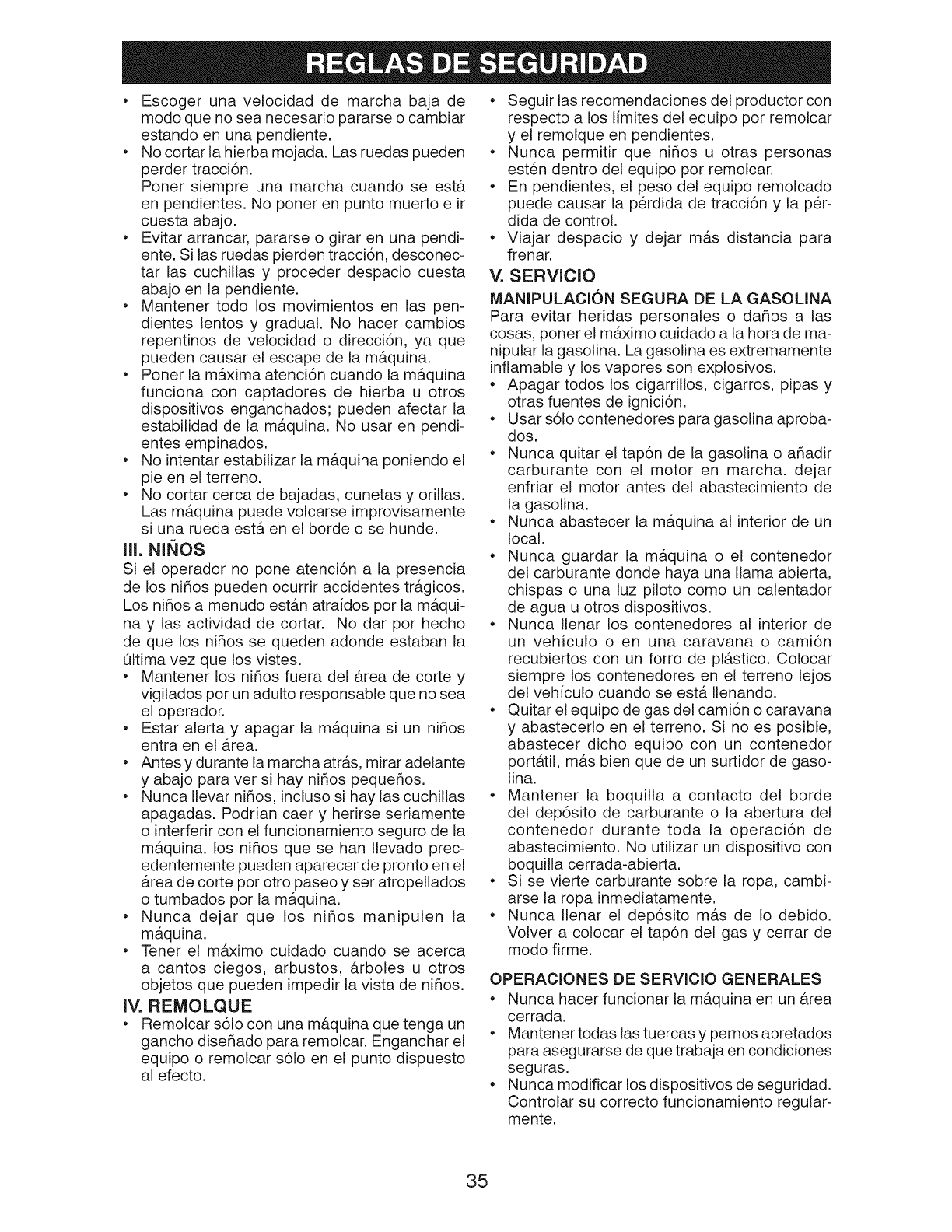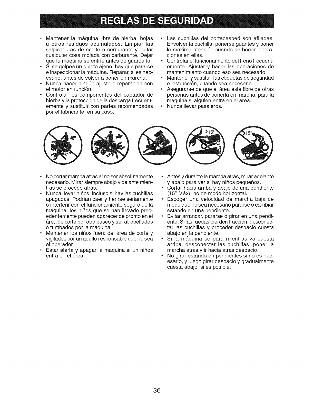 Tonga mucho cuidado cuando cambie de direcci6n en las pendientes.