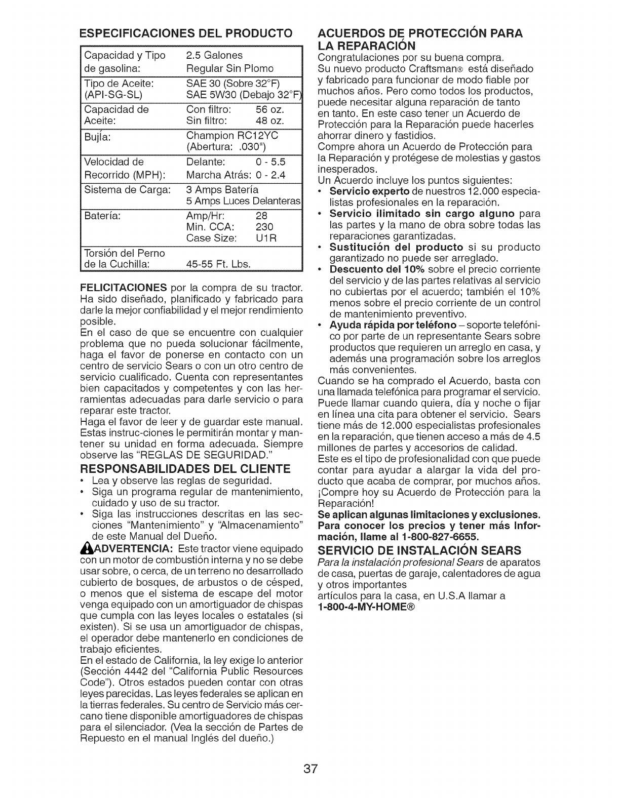 Visit our Craftsman website:www.sears.com/craftsman *As rated by the engine manufacturer
