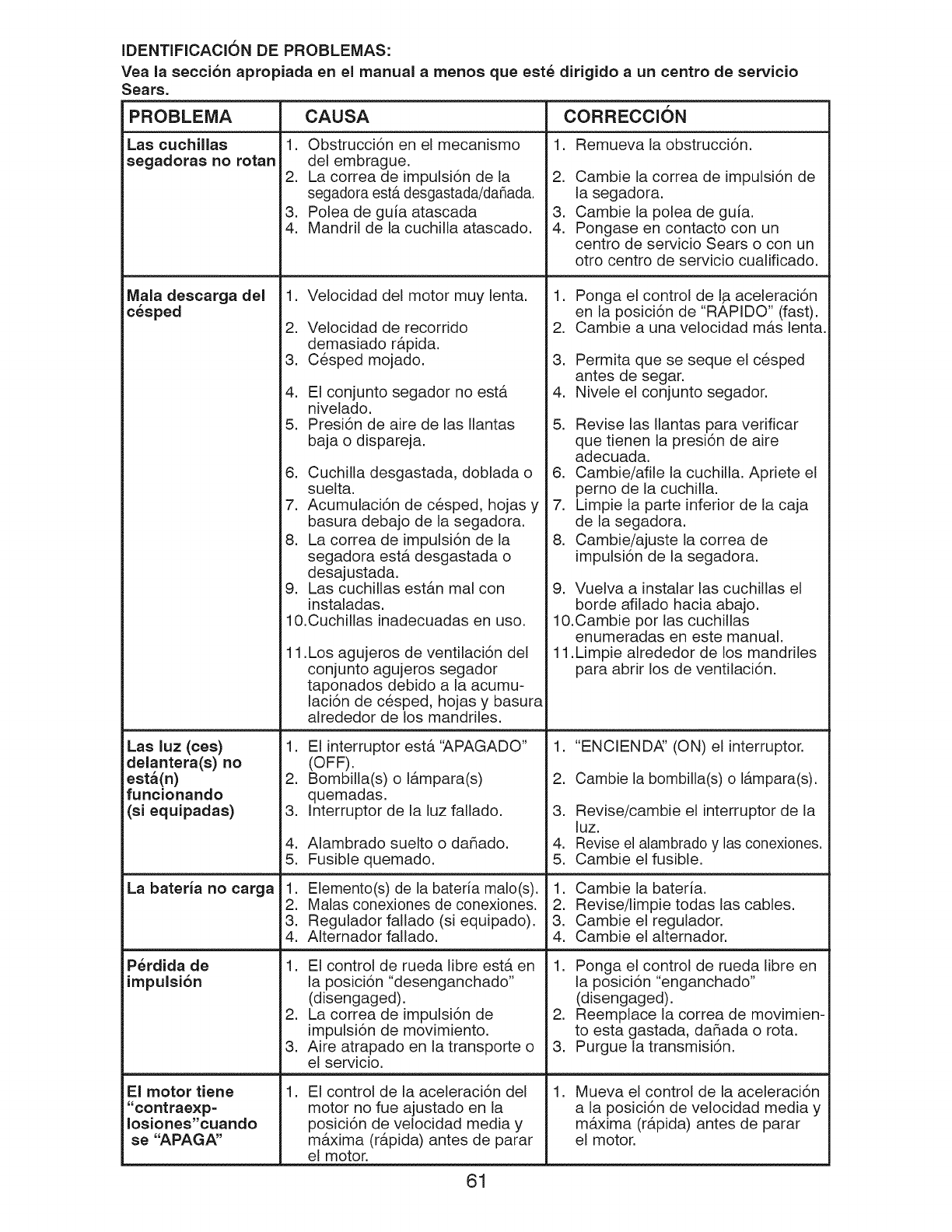 enumeradas en este manual.